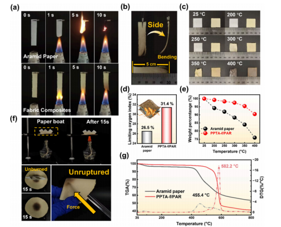 图3:PPTA-f/PAR纳米复合纸的热性能与阻燃性研究