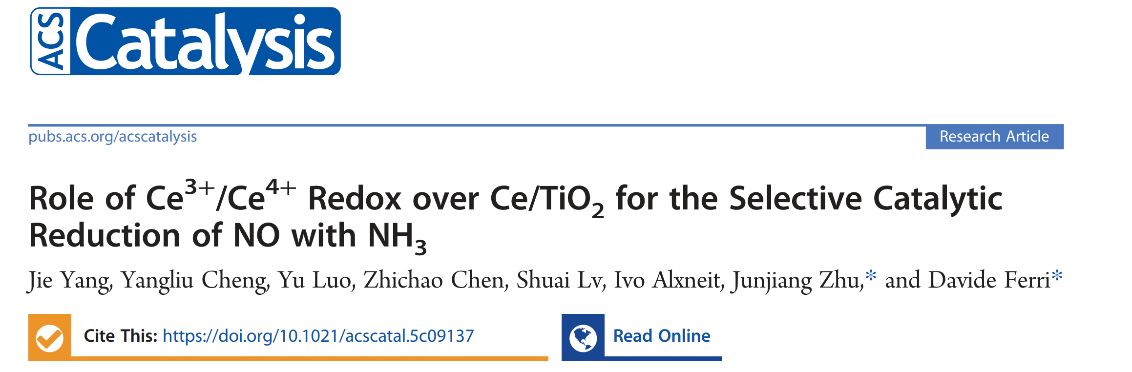 近日,化工学院朱君江教授团队,联合瑞士保罗谢勒研究所(PSI)等单位,在NH3选择性催化还原NO(NH3-SCR NO)反应机理研究方面取得新进展,揭示了Ce基催化剂上NH3-SCR NO 反应的关键决速步骤。相关成果以“The Role of Ce3+/Ce4+ Redox over Ce/TiO2 for the Selective Catalytic Reduction of NO with NH3”为题发表于ACS Catalysis。武汉纺织大学为第一署名单位,团队青年教师阳杰博士为论文第一作者,朱君江教授和Davide Ferri博士为论文通讯作者。