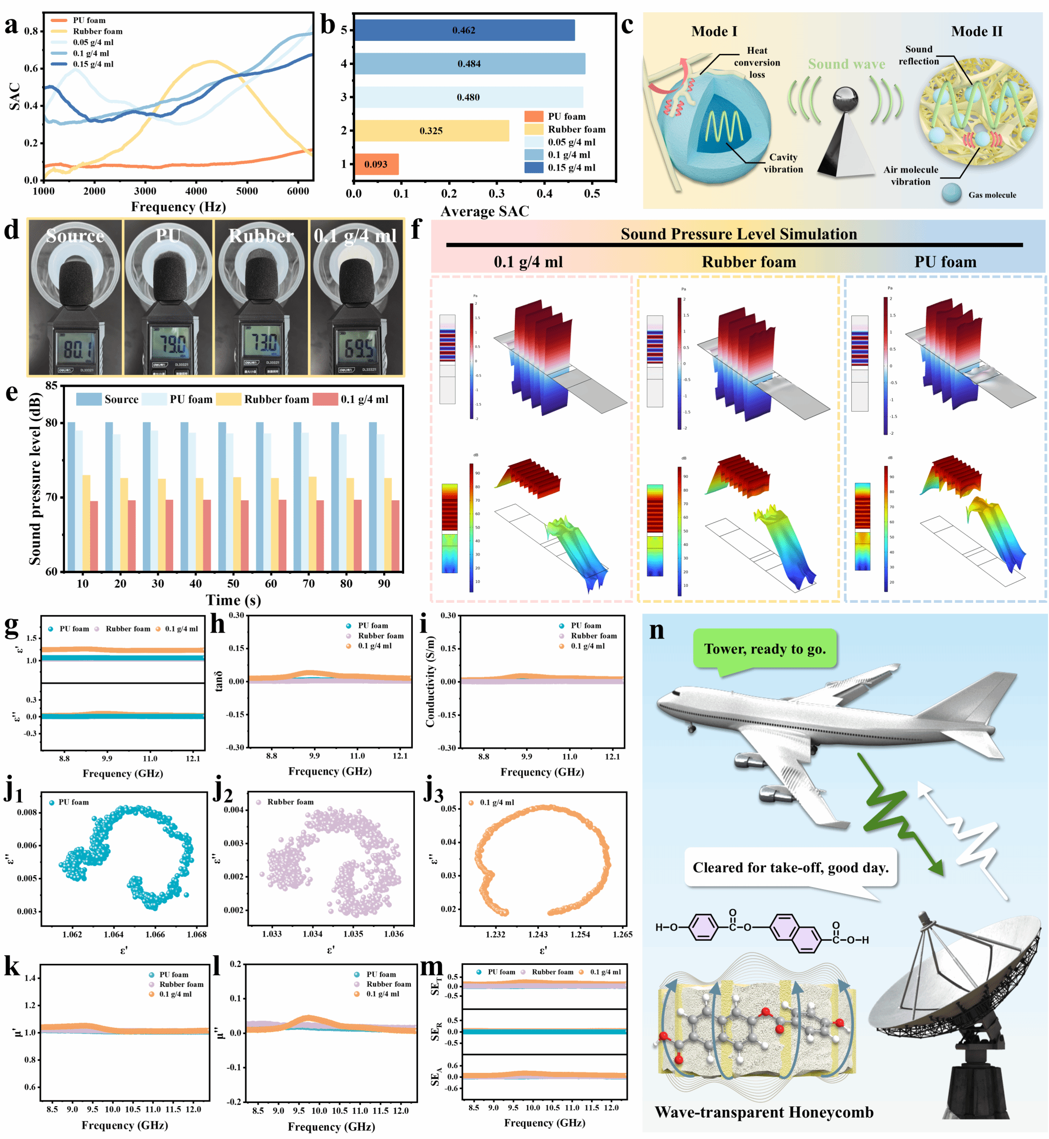 图2 SiO2 HM/PAR NCAH的吸音、降噪与电磁透明性能