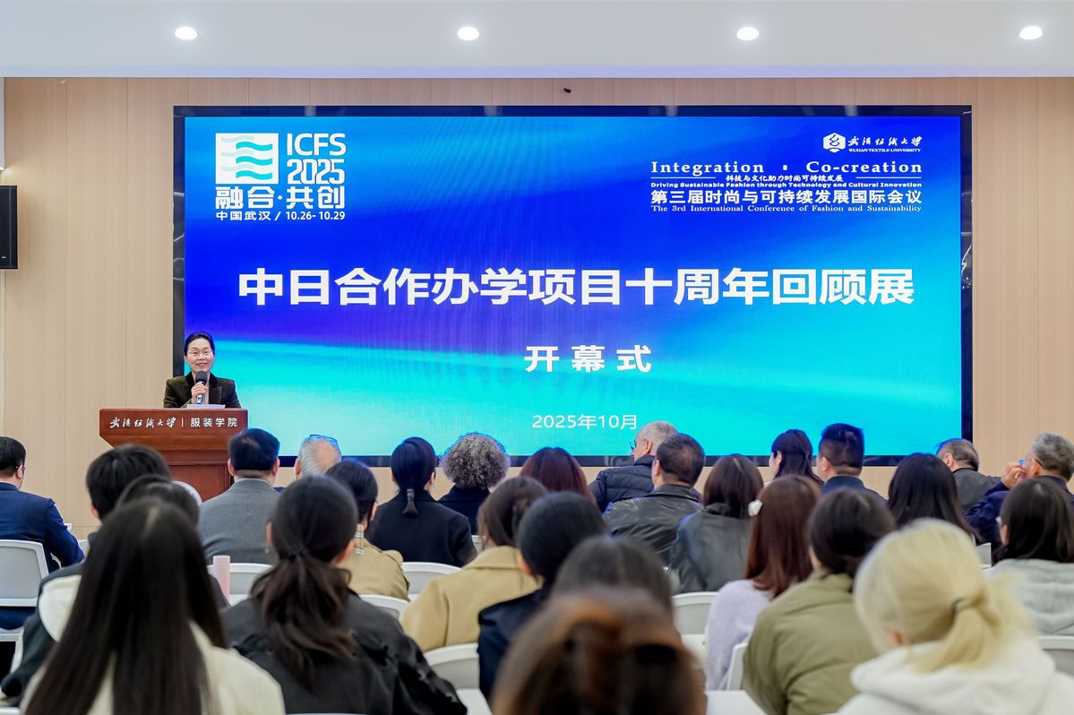 武汉纺织大学副校长王栋在开幕式致辞,他高度肯定了中日合作办学项目十年取得的教学成绩。指出这个项目不仅是武汉纺织大学国际化办学的重要里程碑,更是学校服务国家对外开放战略、培养具有全球视野高素质人才的关键举措。中日合作办学项目是武汉纺织大学对外开放的窗口,推动时尚产业国际化的重要平台。项目的顺利实施体现了“开放包容、互学互鉴、合作共赢”的办学理念,也为学校其他国际合作项目树立了示范标杆。面向未来,学校将以更加坚定的决心、开放的姿态,持续推进国际化办学战略。