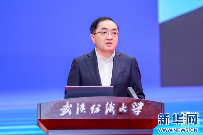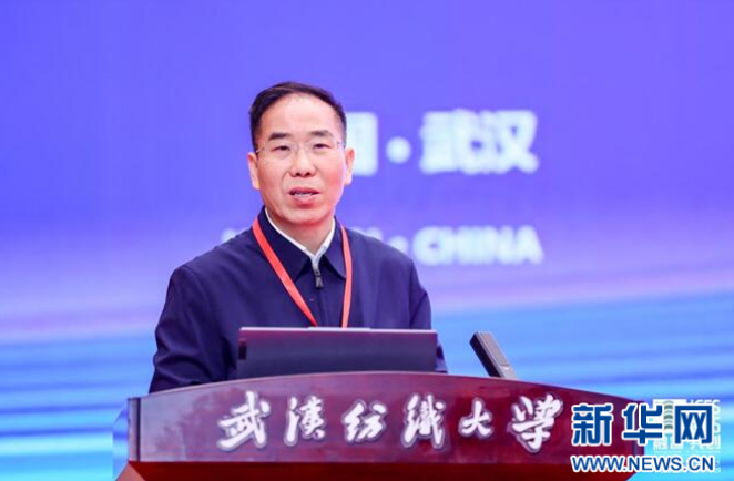 图为武汉纺织大学校长傅欣教授致辞