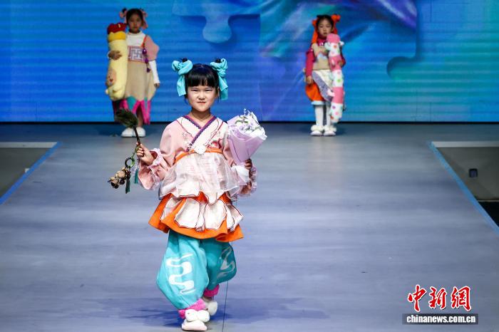 图为小模特展示设计作品走秀。中新社记者 张畅 摄