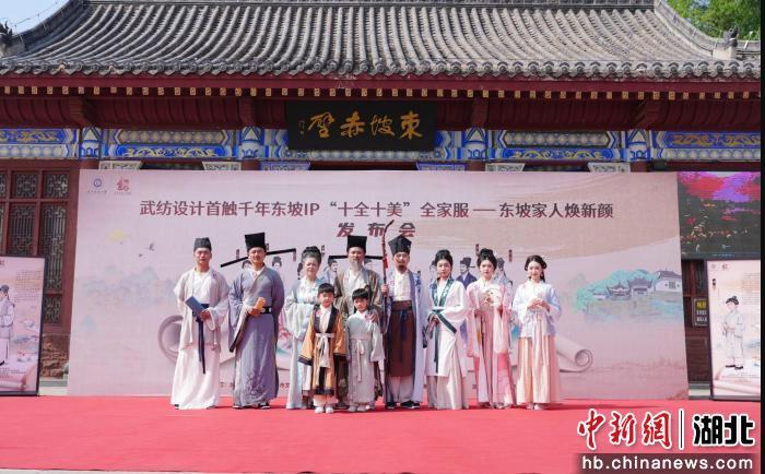 中新网湖北新闻4月26日电 (刘亚 郑婷)把东坡“穿”在身上,让千年宋韵与当代设计撞个满怀。25日下午,武汉纺织大学与黄冈市联合主办的“十全十美”全家服——东坡家人焕新颜发布会在黄冈东坡赤壁景区举行,苏轼一家十口时隔千年首次集体“同框”,身着复原与创意兼具的宋代风韵服饰,从诗词中走进现实。