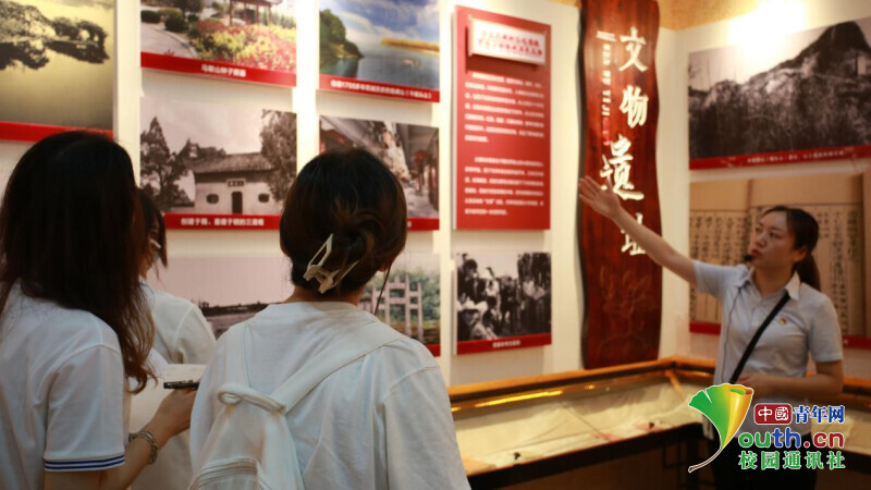 在蔡甸街道新时代文明实践中心——“红房子”爱国主义教育基地,“为人民服务”这几个鲜红的大字深深吸引住实践队员。走进中心展览室,通过一张张老照片、一段段质朴文字介绍,队员深入了解蔡甸区的历史轨迹和发展历程,感受到了蔡甸区所蕴含的码头文化、知音文化、红色文化和家风文化。
