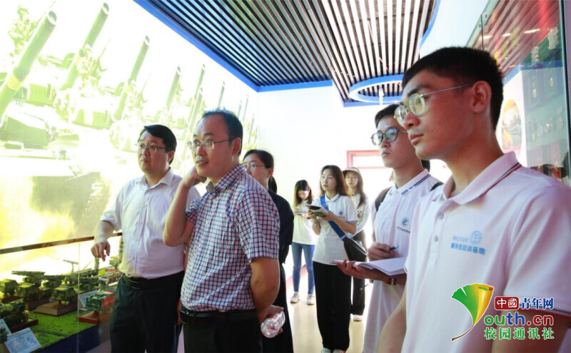 武汉陆海空军爱国主义教育基地负责人、退伍军人梅红斌正介绍着基地建立的历程和理念。在他的带领下,实践队员参观国防装备模型馆、解放军军史长廊、枪械馆、阅兵主题馆、航空航天科技馆。从小到胸标、臂章、手摇式报警器,大到民用设备中国北斗卫星导航系统,从陆军枪支军械到海军军舰潜艇,再到空军战斗机、导弹模型等,实践队员在研学中深刻感悟到国防和军队建设的壮阔历程和伟大成就。武汉纺织大学团委书记张德科表示,“通过开展沉浸式、体验式国防教育,强化青年大学生爱党爱国的深厚情感,是培养国防后备力量的重要途径。”