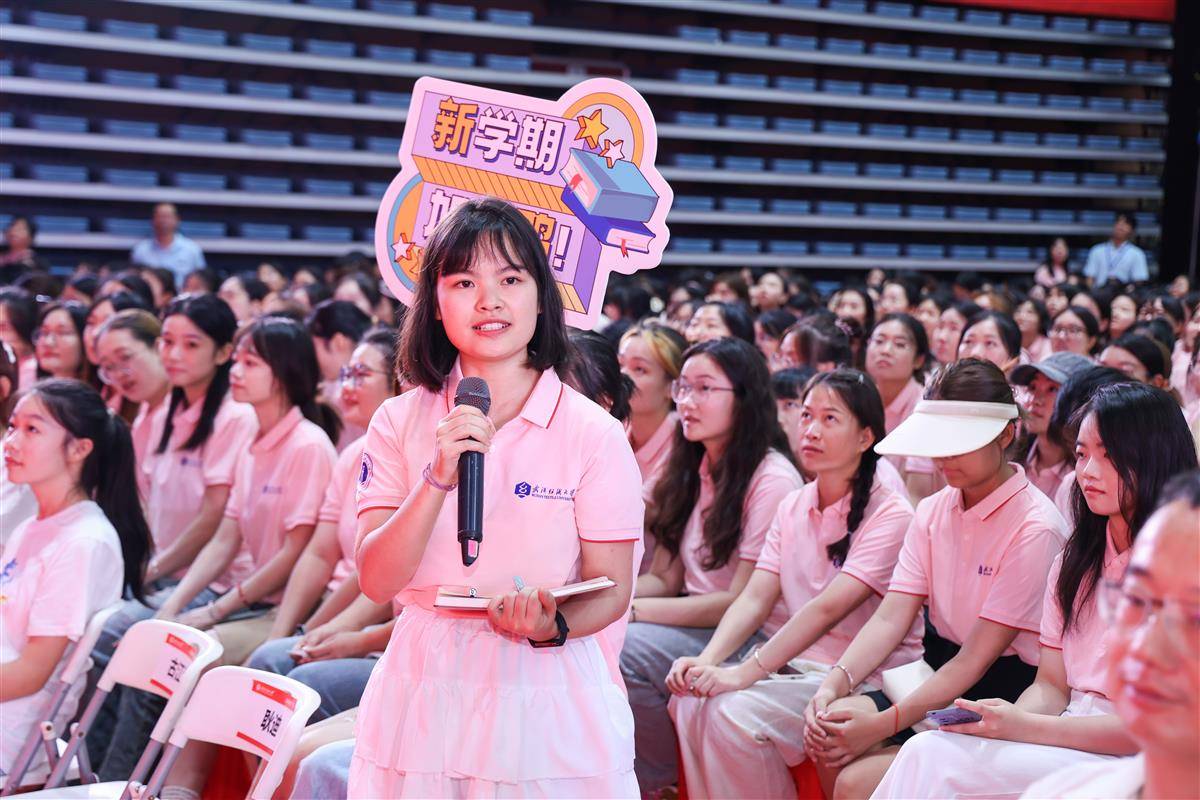 武汉纺织大学2024级新生开学典礼,校长徐卫林现场答疑。武汉纺织大学供图