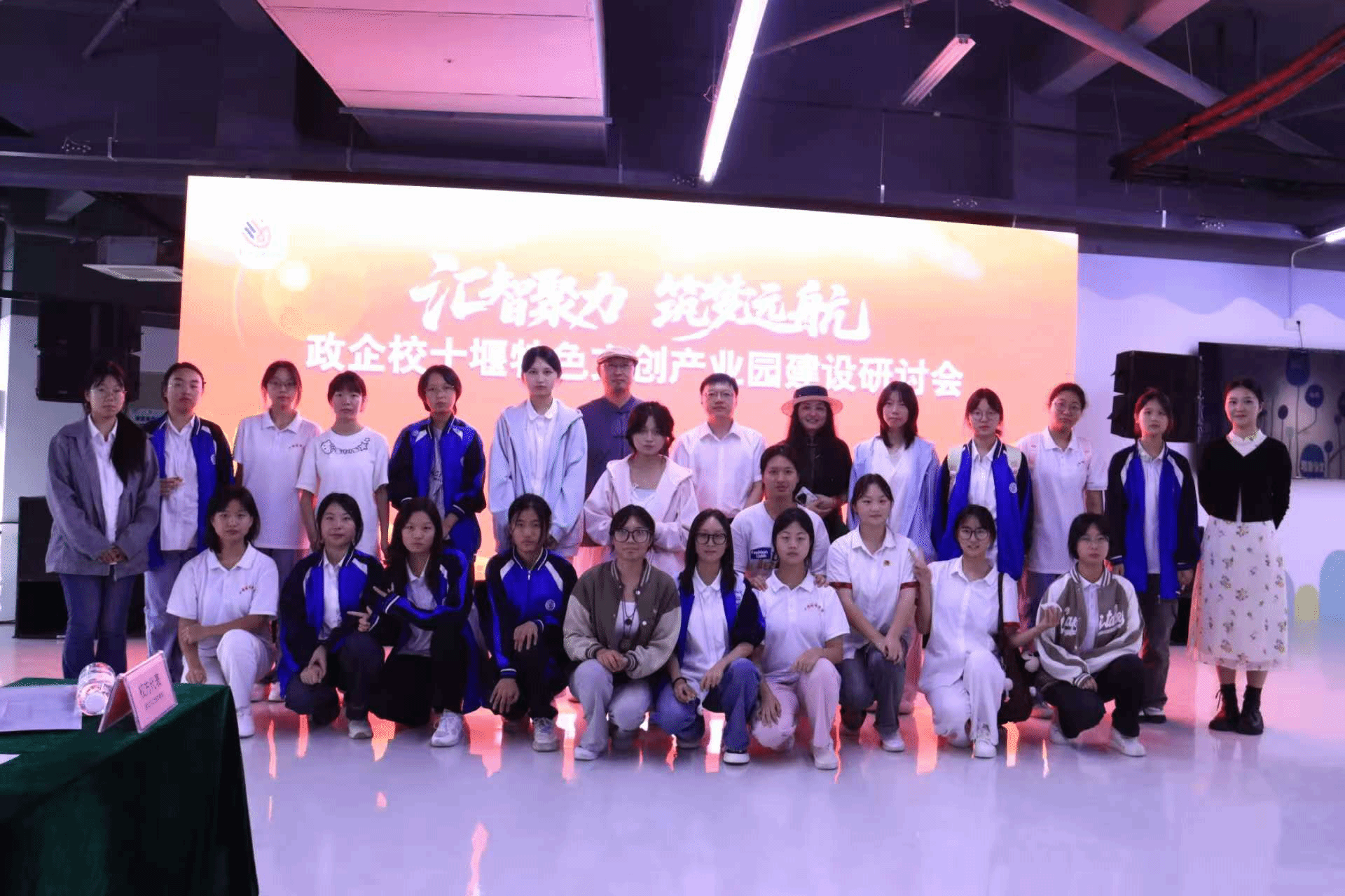 签约仪式后,学院与十堰经济开发区政府部门、十堰江汉职业技术学校师生、湖北布灵布灵智创云科技有限公司等开展《汇智聚力 筑梦远航——政企校十堰特色文创产业园建设研讨会》。研讨会上,政企校代表围绕十堰特色文创产业园建设路径展开深入交流。开发区管理部门介绍了文创产业扶持政策,学院与江汉职校分享了设计人才、技能人才培养经验,布灵布灵智创云科技公司提出“非遗+科技”文化融合开发方案。三方一致同意以实训基地为支点,共建文创设计研发中心,联合开发武当文化、汉水非遗等主题文创产品,探索“教学实践+产业孵化”协同模式,为区域文创产业高质量发展注入新活力。