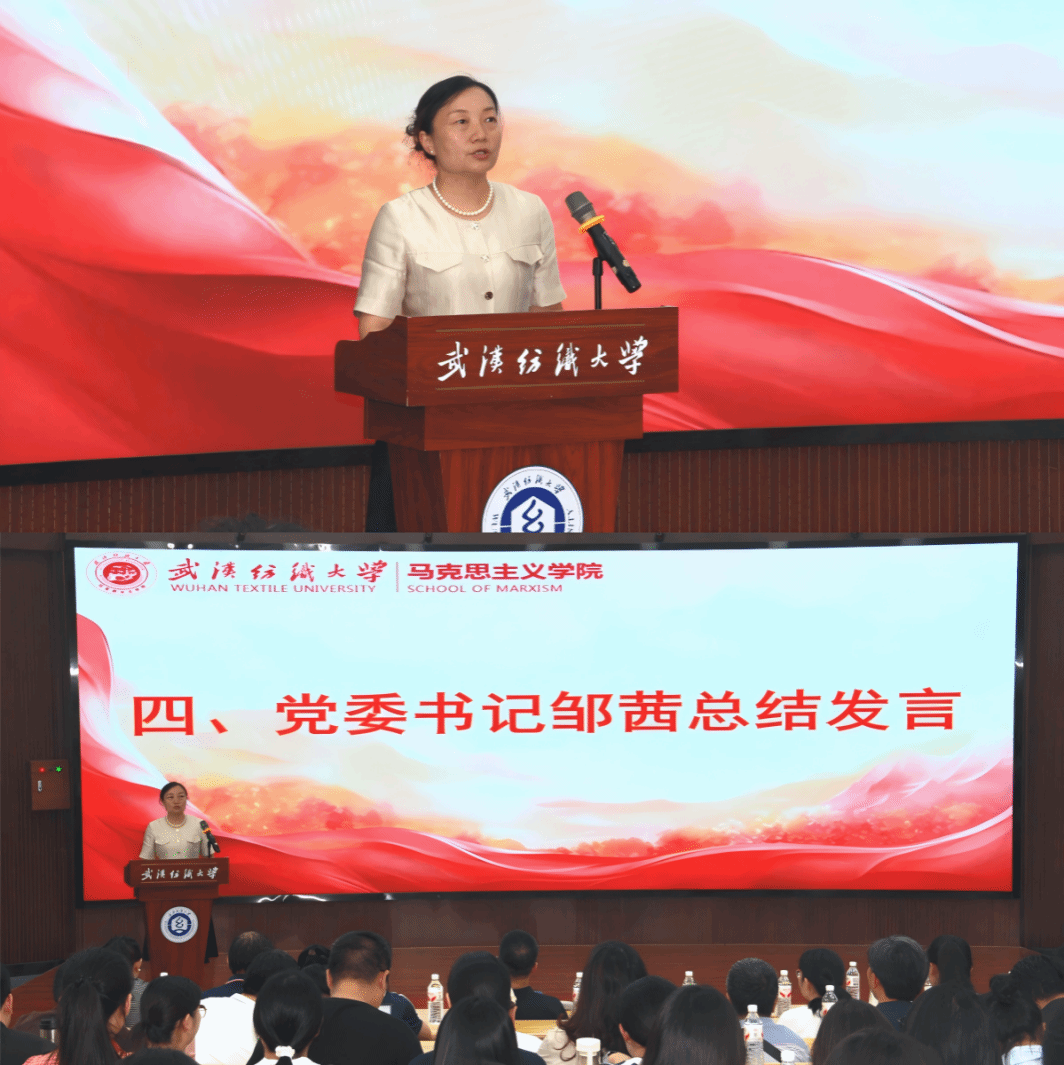 最后,学院党委书记邹茜作总结发言。她强调同学们要认真学习领会徐卫林院士提出的“兴趣力”“自学力”“抗压力”深切要求和傅欣校长在开学典礼寄语学生的“大志向”“大学问”“大情怀”深刻内涵,将其内化为求学治学的精神动力。她对新生进一步提出“严、真、实”要求。“严”是锤炼定力的关键,需严守政治规矩与学术规范,确保研究方向正确、学术行为诚信,筑牢思想与学术底线;“真”是打磨心力的核心,要深耕经典著作求真知、聚焦现实研究真问题、参与实践锤炼真本领,摒弃学术浮躁;“实”是践行行动力的落点,需扎实积累理论、养成朴实文风、开展务实实践。她勉励新生们以“严”立身、以“真”求知、以“实”力行,在理论探索中坚守初心,在时代使命中勇担责任,将个人成长融入国家发展大局,让青春在奋斗中焕发绚丽光彩。