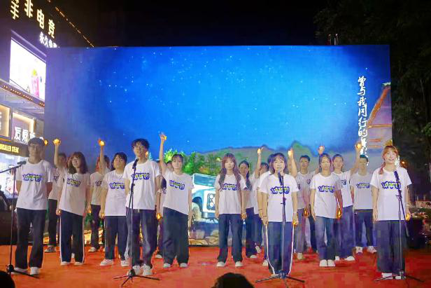 9月15日晚,华罗利广场灯火璀璨、气氛热烈,由关山街道纺织大学社区居民委员会、华罗利广场主办的“奋进新时代 邻里共欢歌”邻里音乐节如期举行。整场晚会节目精彩纷呈,掌声此起彼伏,气氛持续升温。当第十一个节目——《夜空中最亮的星》的旋律悠然响起,来自艺术学院的同学们闪亮登场,将整场演出推向新的高潮。