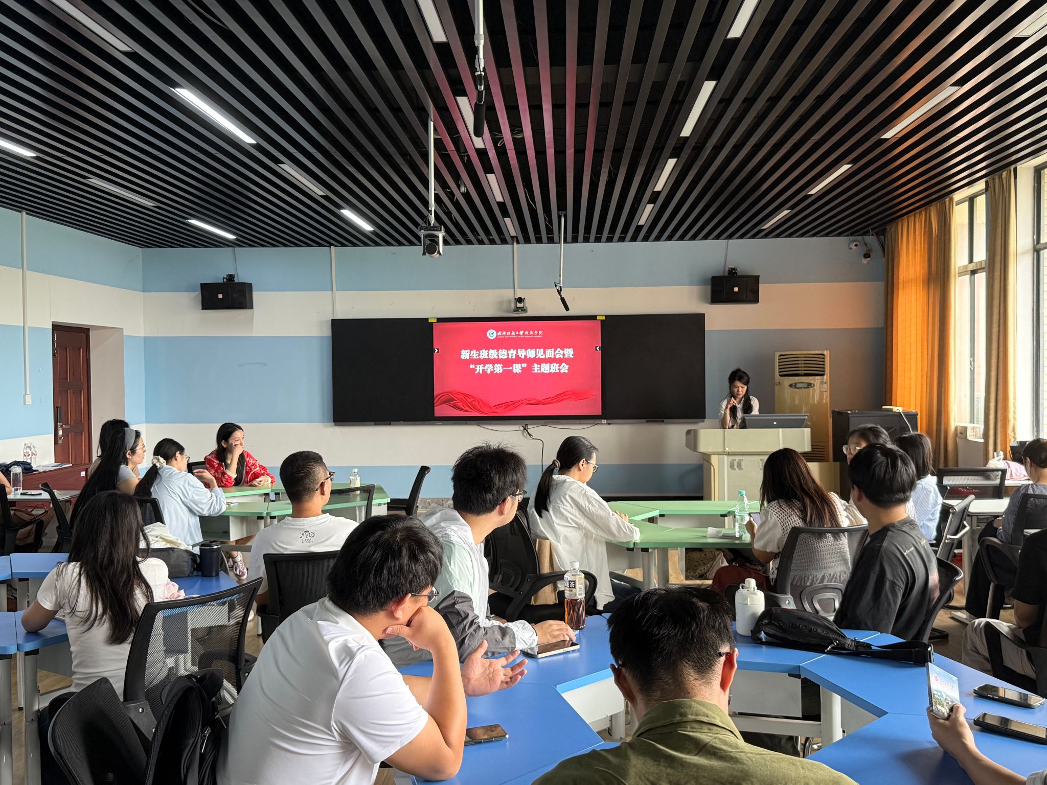 各德育导师面向新生细致介绍了自身的教育背景、学术研究方向以及日常沟通渠道,表达了对新生到来的欢迎、期待和祝愿。班会上,德育导师们结合PPT,聚焦新生入学初期最关切的议题,分模块开展针对性指导,引导新生要强化安全防范意识与自我保护能力,严格遵守学校各类规章制度、纪律要求和管理规范,严禁在工作间、宿舍使用大功率电器,严防校园贷、网络赌博及网络诈骗,共同营造安全、谐的学习生活环境,夯实校园安全稳定底线。德育导师们结合经济学科特色与当下就业市场趋势分享个人体会,并给予新生成长发展建议,勉励新生要结合自身兴趣与优势,尽早适应、积极融入,明晰个人学术规划与发展目标并积极投入到实践中。