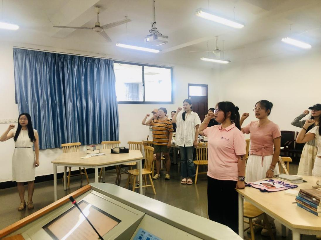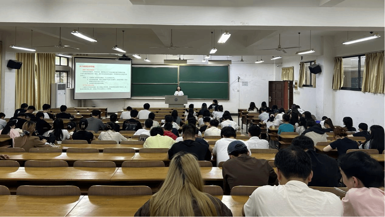 9月16日下午,外国语学院副院长刘方荣和教学秘书王春在崇文楼308教室对学生开展了研究生科学道德与学术规范专题教育以及研究生学籍学位专题教育。刘方荣结合学校规章制度,具体说明了请假审批、学籍管理和奖惩规范等要求,并提醒新生要严格遵守学术道德,坚守学术底线,杜绝学术不端等行为。王春为新生们介绍了学籍与学分管理的相关规定,对有效规划课程提出了建议。MTI教育中心主任刘珊对学生开展了学业发展规划教育,她介绍了纺大MTI的建设情况、学院师资和科研特色、课程体系及人才培养模式,并带领全体25级翻译硕士新生进行了翻译入行宣誓。