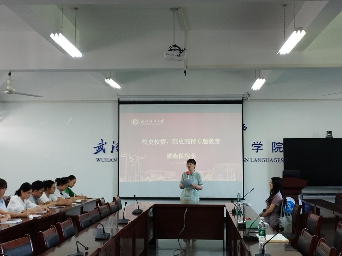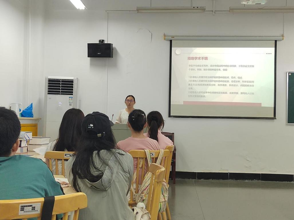 9月18日上午,外国语学院MTI教育中心副主任陆雪芹在崇文楼403对学生开展了研究生日常管理和学科竞赛教育。