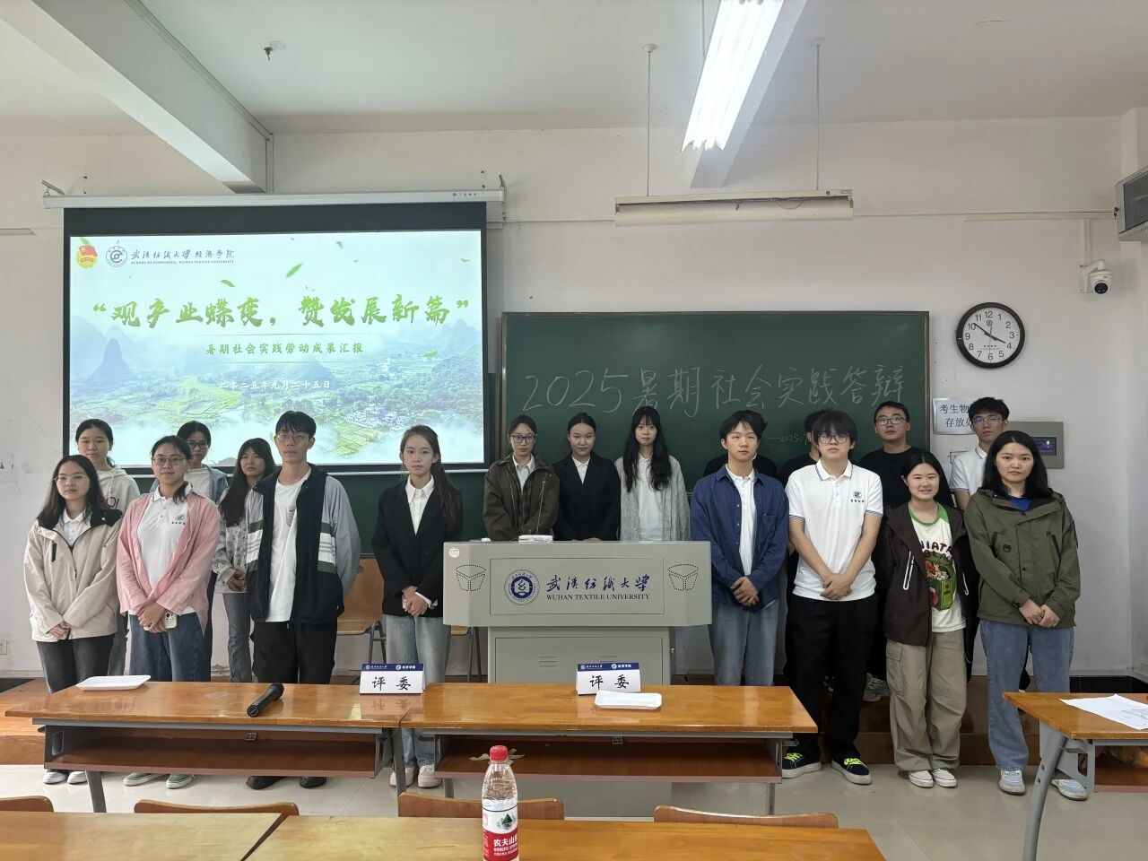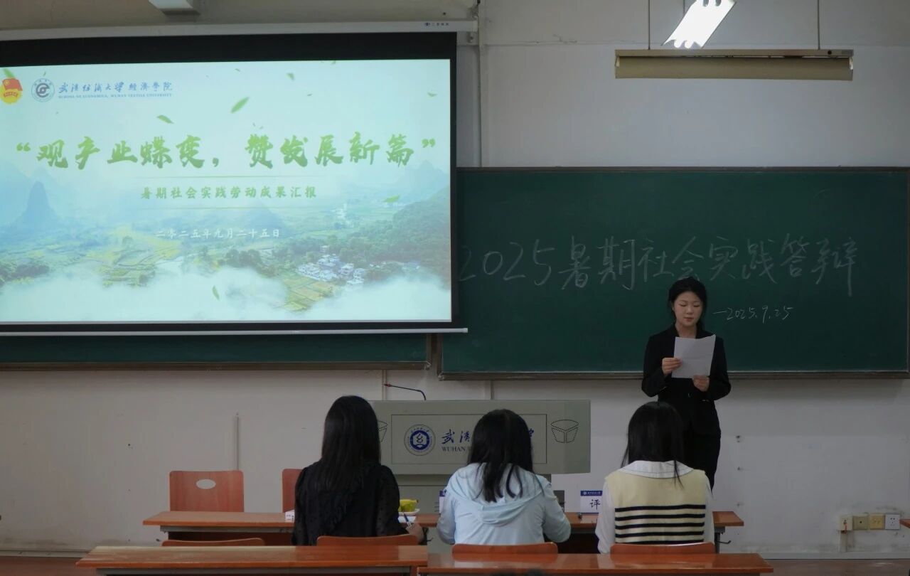 9月25日下午,经济学院在崇德楼110、111、112教室顺利举行2025年暑期社会实践答辩活动。本次活动以“观产业蝶变,赞发展新篇”为主题,聚焦湖北省“支点建设”与现代纺织产业等重点方向,共有56支学生团队参与答辩。学院专业教师与学工联合组成评审小组,对各团队的实践成果进行认真评审。