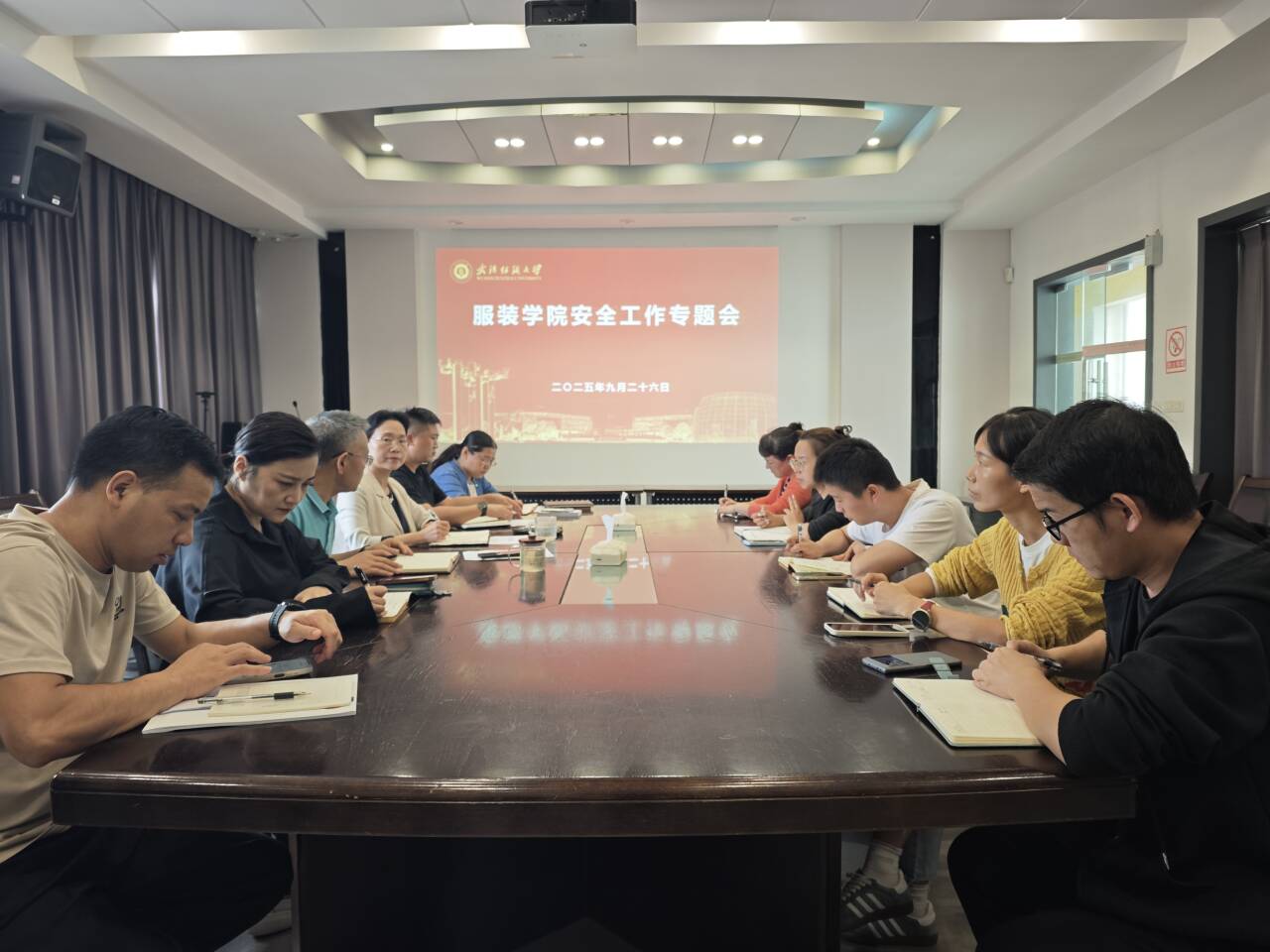 9月26日,服装学院在尚知楼三楼会议室召开安全工作专题会议,深入研判当前学生安全形势,系统部署安全管理相关工作,学院全体党委委员及辅导员参会。