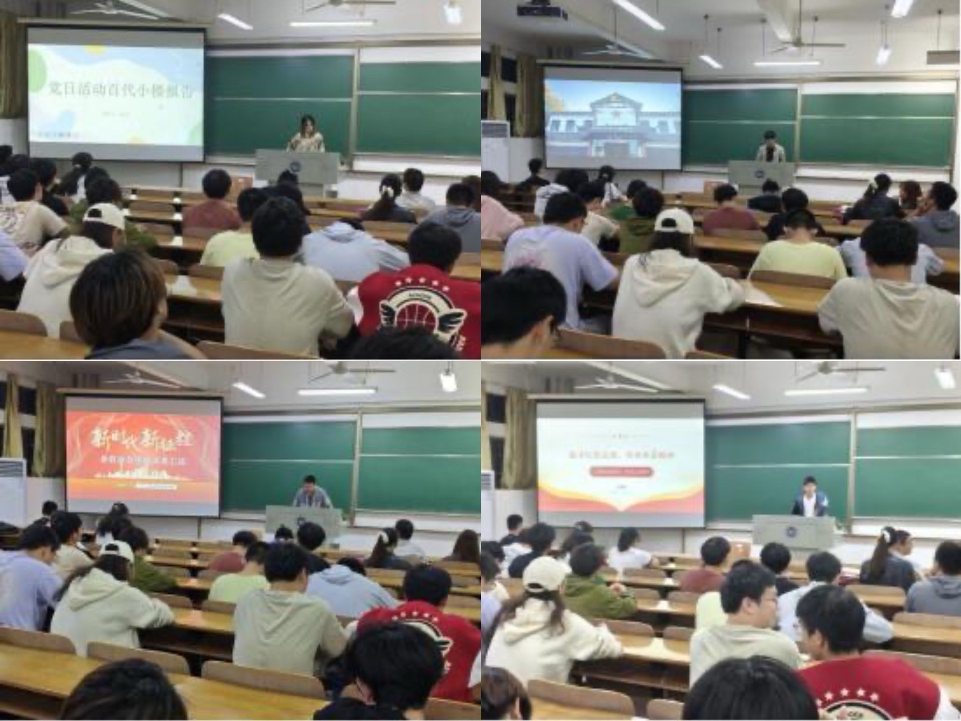8 位同学依次分享2025年暑期社会实践心得体会。李雯馨以 “血色丰碑与信仰密码” 为主题,结合革命事迹解读信仰内涵,表践行决心;郑甘霖分享石门峰纪念公园参观感悟,借实物与烈士事迹深化对红色基因的认知;杜瑞琪通过毛泽东旧居参观,体会老一辈革命家优良作风,坚定为人民服务信念;孙佳音聚焦百代小楼红色音乐史,强调文化宣传的革命意义;孙文新结合江夏区革命烈士纪念馆地域特色,讲述本地烈士事迹,感怀和平生活;王泽霖以八路军豫西抗日纪念馆为切入点,感悟人民战争力量与军民情谊;刘承骁回顾四行仓库保卫战历史,受 “八百壮士” 精神激励;司双羽总结系列红色实践,从多维度触摸红色脉搏,实现从被动学习到主动感悟的转变。
