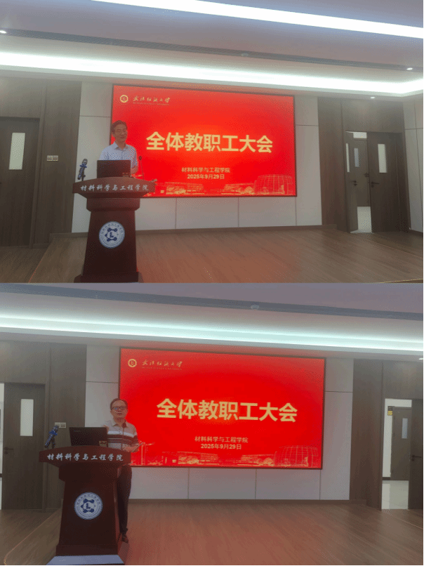 9月29日,材料学院召开全体教职工大会,系统梳理学院近期工作,传达学校相关要求,严明节日纪律。