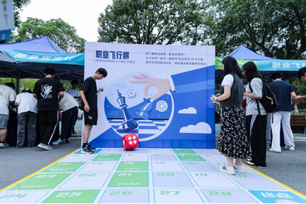 嘉年华现场人头攒动,气氛热烈。活动区域被精心划分为八个主题模块,构成了一个完整的生涯探索旅程。