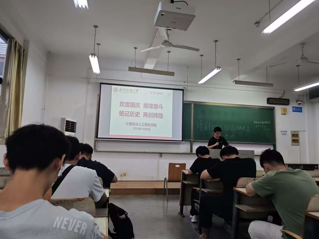10月8日,计算机学院开展“欢度国庆 接续奋斗 铭记历史 再创辉煌”暨“世界精神卫生日”主题班会,班会围绕习近平总书记在庆祝新中国成立76周年招待会重要讲话精神和2025年“人人享有心理健康服务”的世界精神卫生日主题,为学生带来一场爱国主义教育和心理健康知识的普及盛宴。