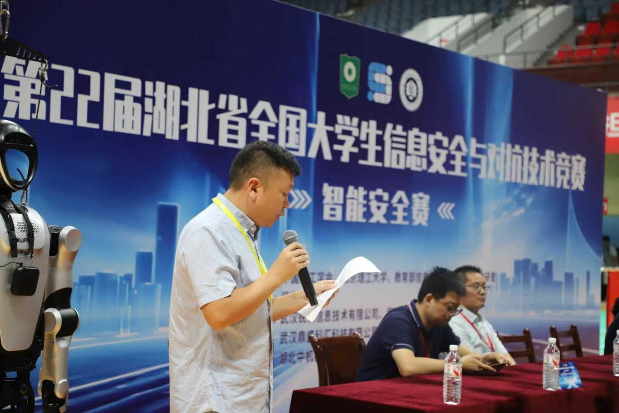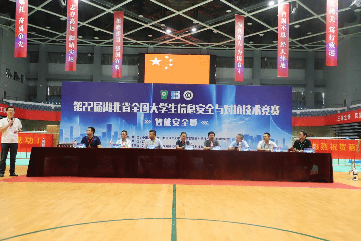 10月12日,第22届湖北省全国大学生信息安全与对抗技术竞赛暨智能安全赛在武汉纺织大学体育馆开幕。来自华中科技大学、武汉理工大学、中国地质大学等省内27所高校的100余支队伍参加比赛。本次赛事由中国兵工学会、北京理工大学、教育部信息对抗技术专业虚拟教研室联合主办,武汉纺织大学承办,武汉锐德信息技术有限公司、武汉鑫卓雅科技有限公司、武汉鼎盛融汇科技有限公司提供技术支持,湖北中机教育科技有限公司、吉林省奥奕信科技有限公司担任服务单位。大赛组委会秘书长、吉林大学康冰教授,湖北省机电工程学会湖北省机电工程学会副秘书长王裕超,武汉纺织大学本科院副院长李明,计算机与人工智能学院(网络空间安全学院)学院院长胡新荣、院党委书记晏伟、副院长彭涛,以及企业代表、学生代表共同出席开幕仪式。开幕式由彭涛主持。