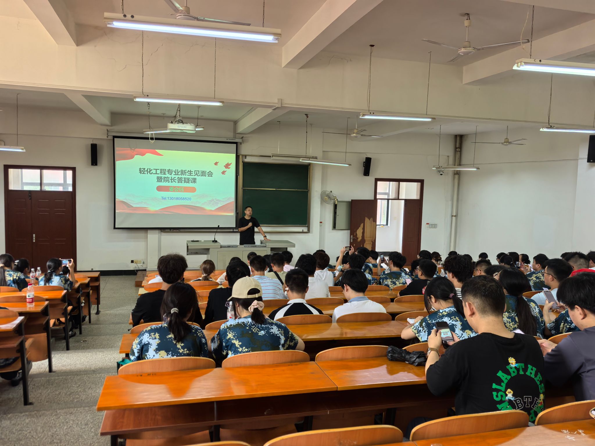 9月12-13日,纺织学院分专业开展了院长答疑课。副院长夏治刚(主持工作)围绕“何谓大学生?”“如何成为PHD?”两个关键问题,寄语新生要树立远大志向,做到“大人学、大量学、大师学”——即培养大格局、积累大知识、追寻大师境界。副院长姜会钰从“轻资源、化技术、强应用”三大定位出发,系统梳理了轻化专业发展方向,介绍了“化学基础、专业核心、方向选修、实践应用”四位一体的课程体系,列举了纺织染整、皮革日化、造纸、环保检测、科研院所等多类就业单位与岗位,鼓励新生主动规划大学生涯,夯实化学基础,积极投身实践,早日成长为具备创新能力和绿色视野的高素质工程技术人才。