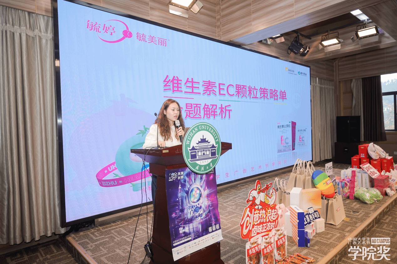 宣讲环节,来自桂林三金西瓜霜、毓婷等多家知名企业的代表登台解析命题,从市场背景到创意执行,层层拆解,为在场学子带来了详实且精彩的命题策略单解读,现场掌声与互动频频。