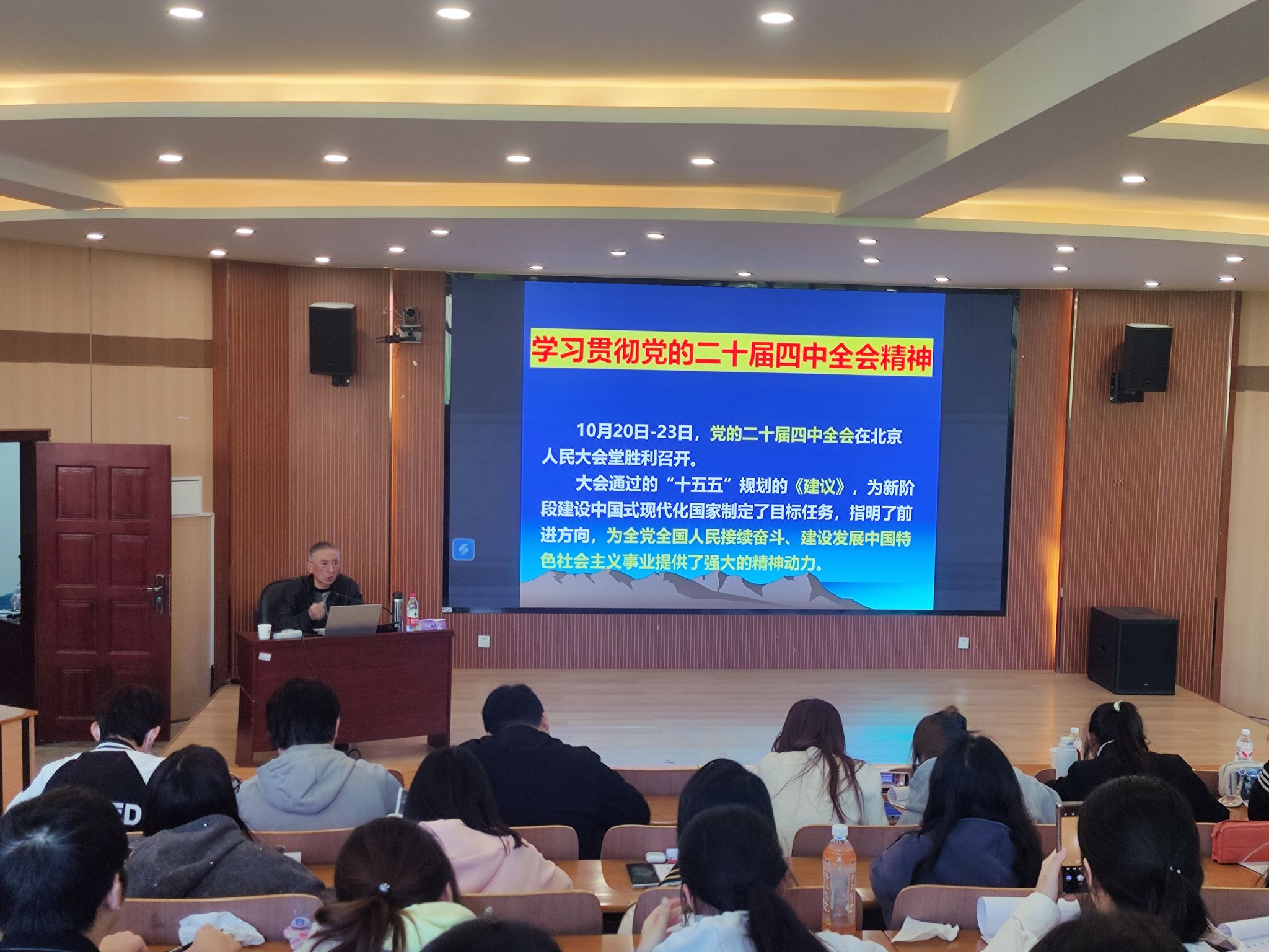 王教授还对党的二十届四中全会的重要意义进行了解读,引导全体同学认真学习贯彻党的二十届四中全会精神,以“十五五”规划为指引,树雄心,立壮志,学好知识,练好本领,为建设中国式现代化国家贡献青春和力量