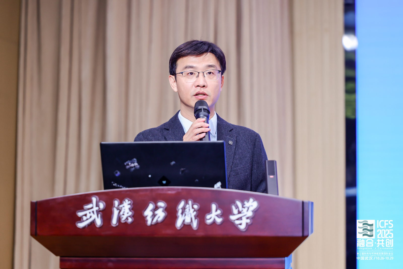 武汉纺织大学国际交流与合作处处长计臣致开幕辞。他强调,在“一带一路”倡议的宏大背景下,时尚产业作为文化交流与经贸合作的重要载体,正迎来前所未有的发展机遇。武汉纺织大学希望借此论坛,搭建一个高水平的国际对话平台,推动知识共享、经验互鉴与产学研深度融合。