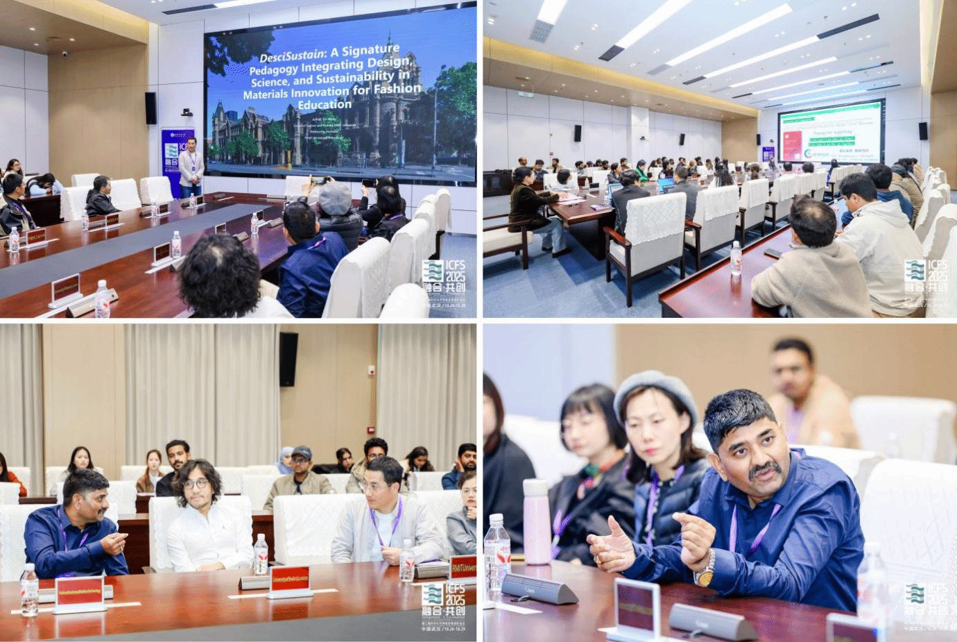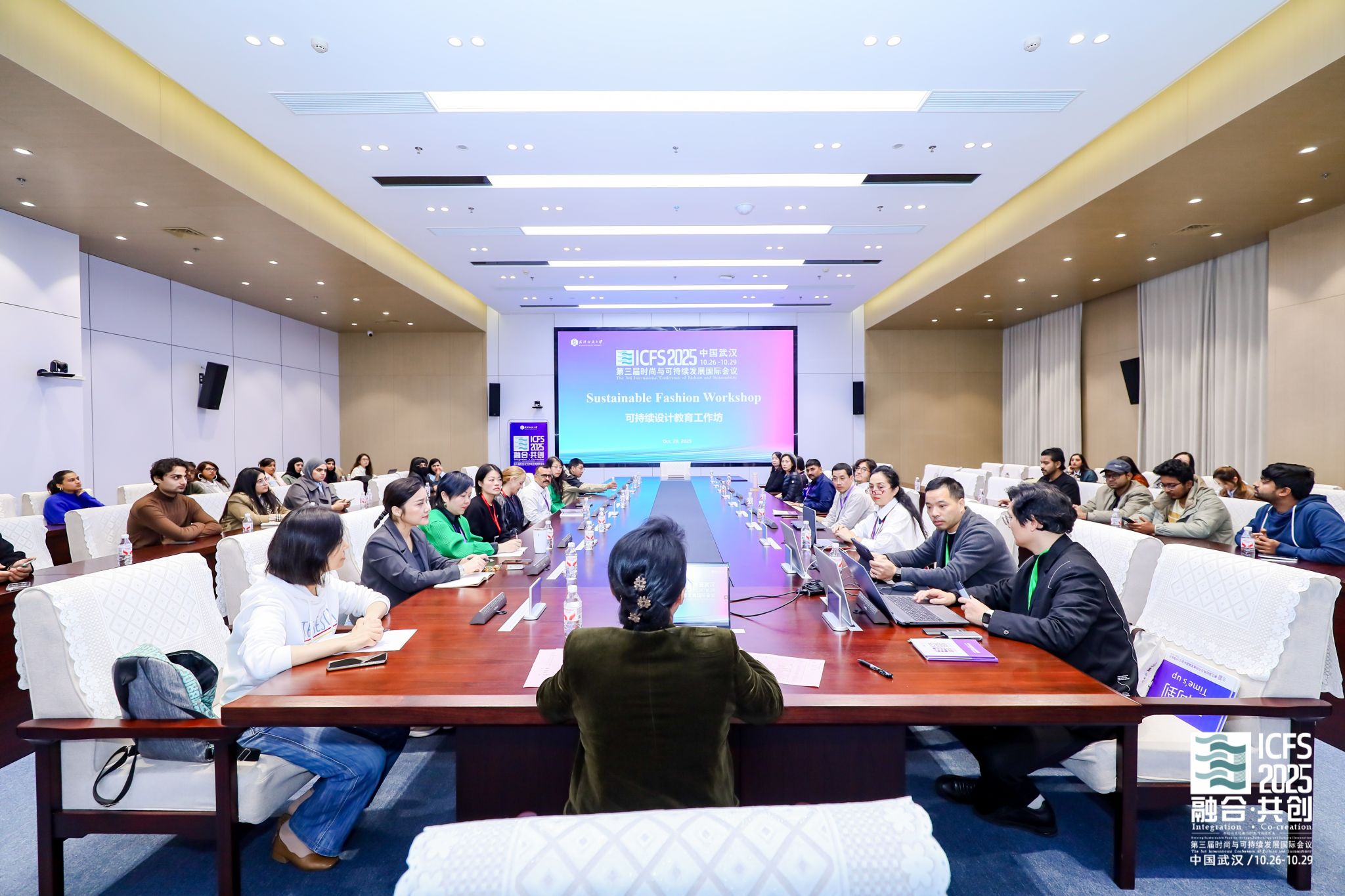 10月28日,第三届时尚与可持续发展国际会议重要环节“时尚可持续设计教育工作坊”在武汉纺织大学成功举办。来自澳大利亚、英国、孟加拉、印度、巴基斯坦等13个国家的专家学者、留学生及教育工作者齐聚一堂,围绕可持续设计教育的实践创新、现实挑战与未来方向展开深度研讨。武汉纺织大学服装学院院长陶辉教授主持本次工作坊,近两小时的议程通过主题分享与互动讨论,凝聚国际共识,形成《可持续设计教育武汉倡议》,为全球时尚产业绿色转型注入教育动能。