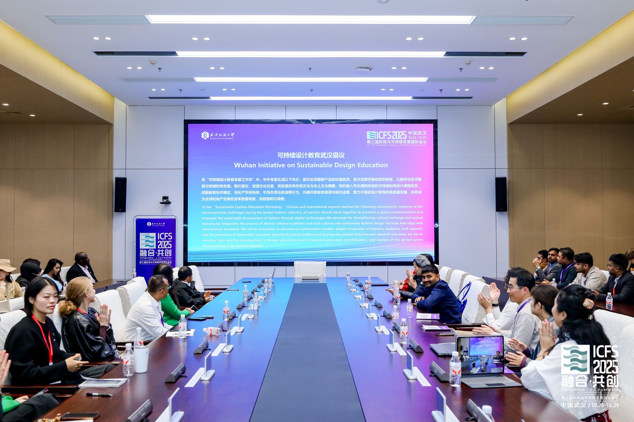经过充分研讨,中外专家达成广泛共识,并正式发布《可持续设计教育武汉倡议》。倡议明确:要加强文化互鉴,将各国优秀传统文化与本土文化精髓有机融入国际标准的可持续设计课程体系;创新教育协作模式,深化产学研协同,引导负责任的消费行为;共建共享教育资源与研究成果,推动设计教育高质量发展,共同成为全球时尚产业绿色变革的倡导者、实践者和引领者。专家一致认为,可持续设计教育需坚持 “尊重个性、科技赋能、学科交叉、职业导向” 四大原则,既要赋予学生自主探索的空间,又要通过技术创新与跨学科融合拓宽实践边界,同时对接行业需求明确职业发展路径,让可持续理念真正内化为学生的职业素养与生活方式。
