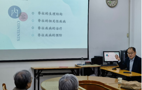随后,裴久国主任向在场的退休教职工们作了“脊柱的养生”讲座。裴医生是我国著名的中医专家,讲座专业而易懂,在场的退休教职工都表示获益匪浅。