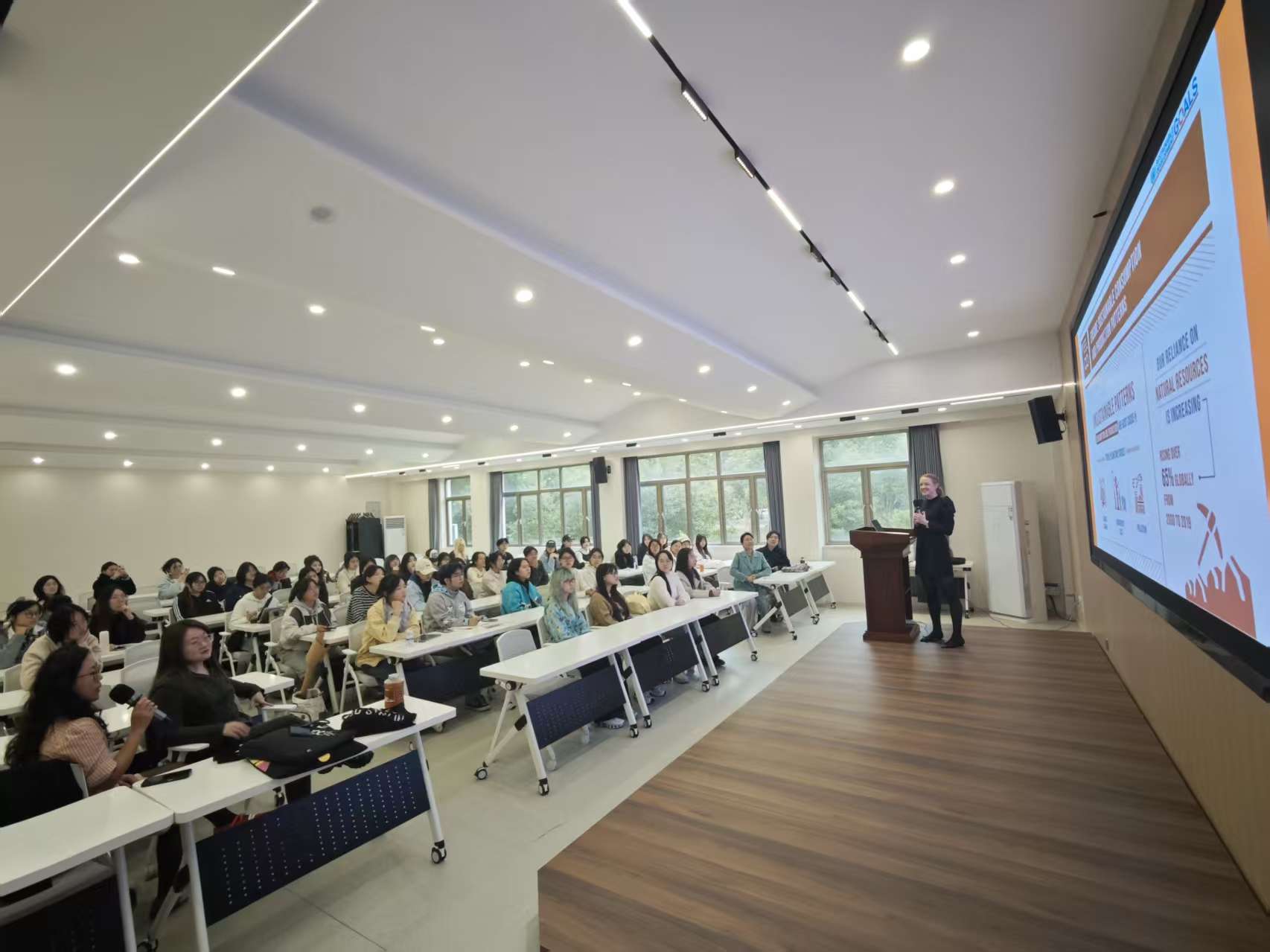 10月29日下午,服装学院举办了一场主题为 “Circular Fashion Design & Marketing(循环时尚设计与营销)” 的国际交流工作坊。本次活动特别邀请到英国曼彻斯特城市大学时尚学院的 Paysy Perry 教授作为主讲嘉宾,为师生们带来一场精彩的国际学术分享与互动讨论。活动由服装学院院长陶辉教授主持。