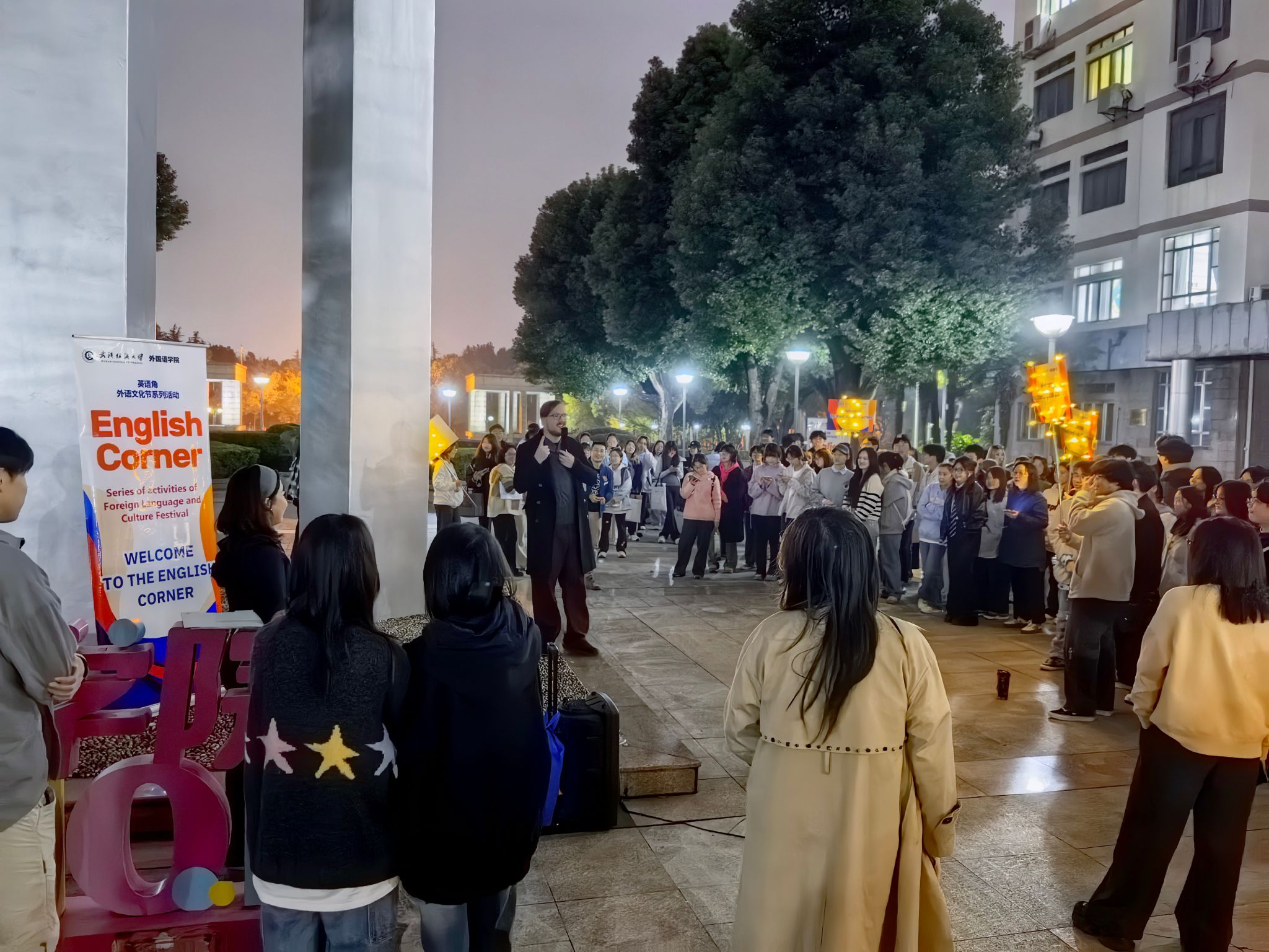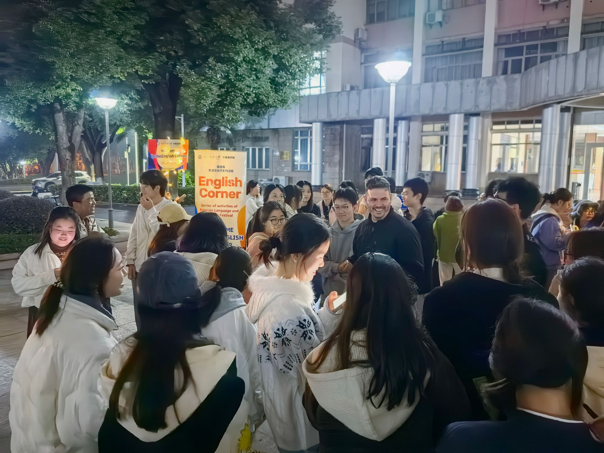 为营造浓厚英语学习氛围,促进跨学科交流与合作,提升学生外语应用能力与跨文化交际素养,10月30日晚,由外国语学院联合伯明翰学院共同举办的英语角活动在南湖校区成功举行。外国语学院班子成员、伯明翰学院相关负责人、大学英语教师及双方多名外籍教师参加活动。活动吸引了南湖校区两百余名本硕学生踊跃参与,现场气氛热烈,交流活跃。