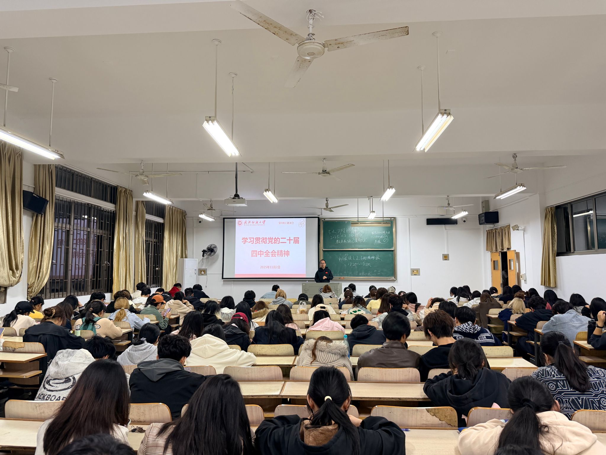 11月2日晚上,设计学院开展“学习贯彻党的二十届四中全会精神”主题班会。各年级辅导员、各班班主任主持班会,在校本科生参加本次班会。