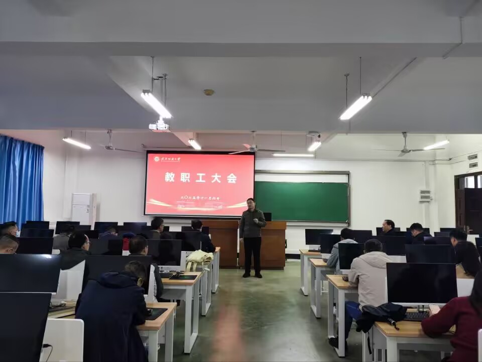 副院长何云斌(主持工作)首先肯定了学院在科研方面作出的努力,并鼓励全体教师积极申报各类基金项目,提升科研创新能力。紧接着,何云斌根据学校统一要求,对全体教职工进行2025年硕士研究生入学考试自主命题工作培训, 就命题工作的规范性、安全性、保密纪律以及科学性原则提出了明确要求,确保此项工作万无一失。随后,他对学期中的教学安排进行了强调,并介绍了新入职的教师,对他们的加入表示热烈欢迎。