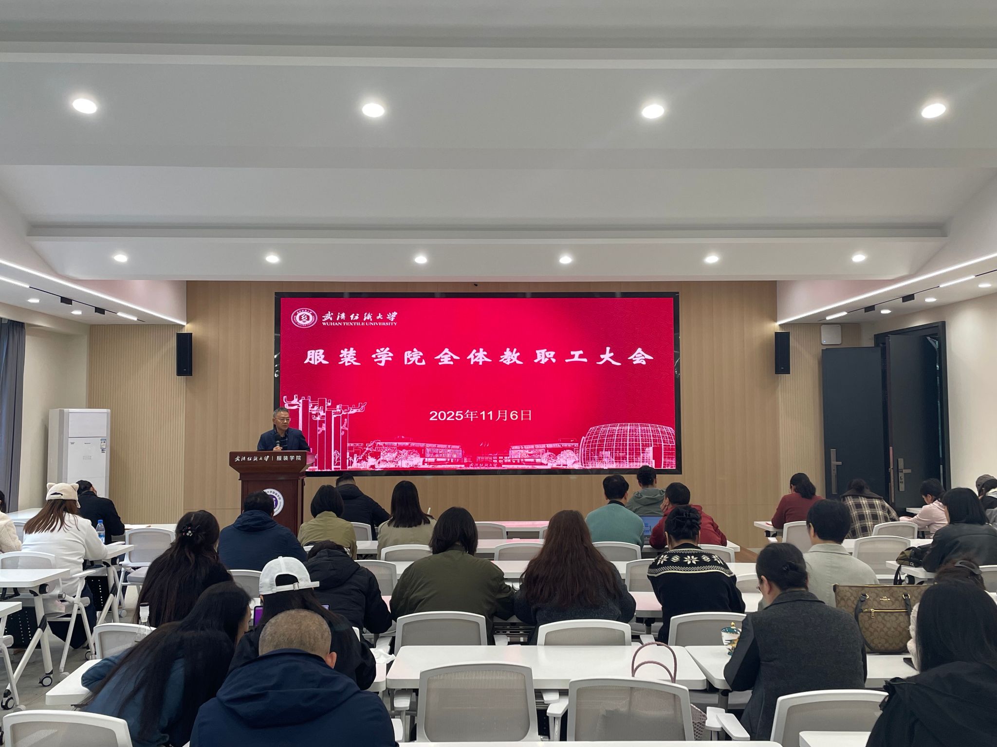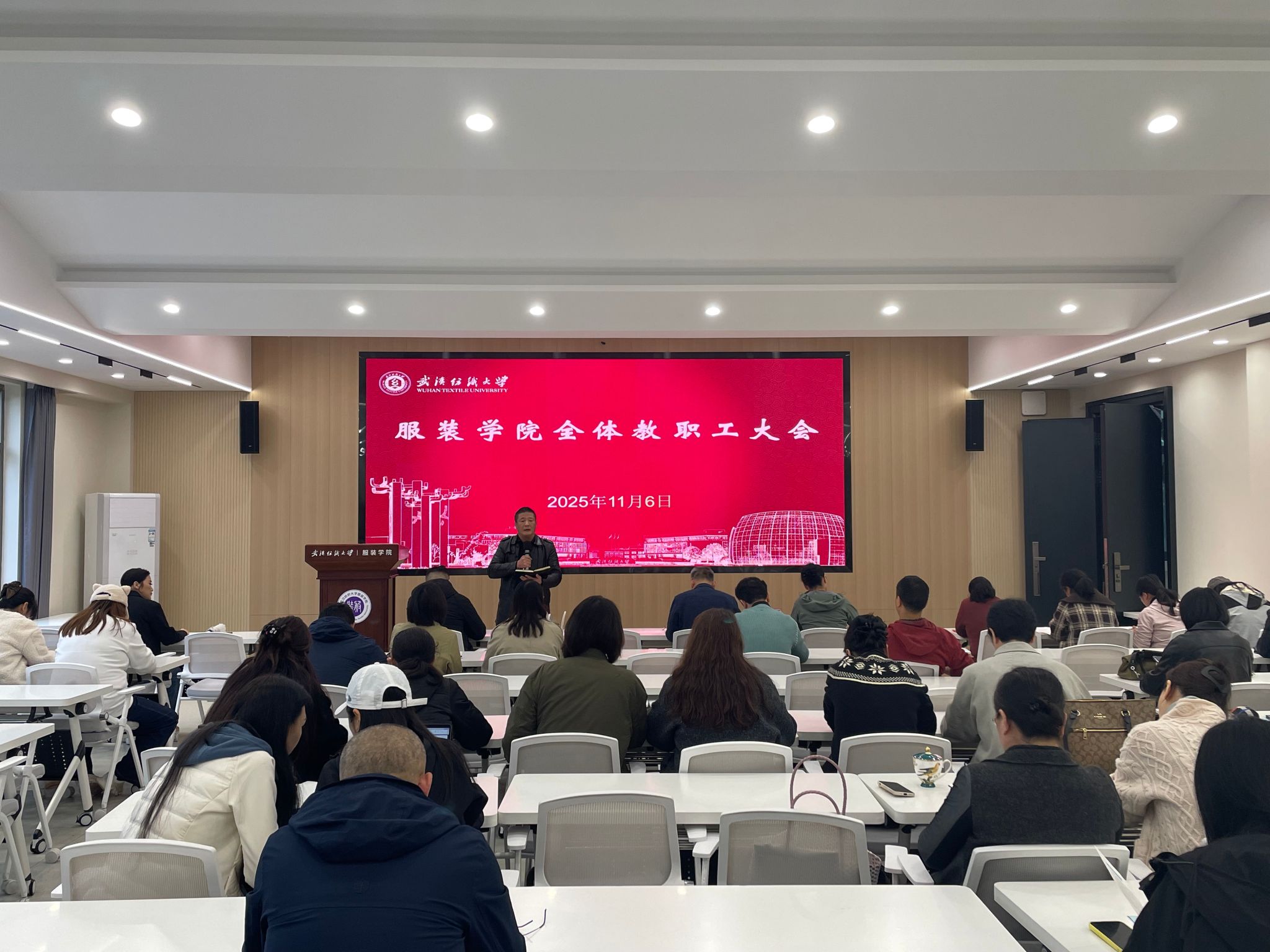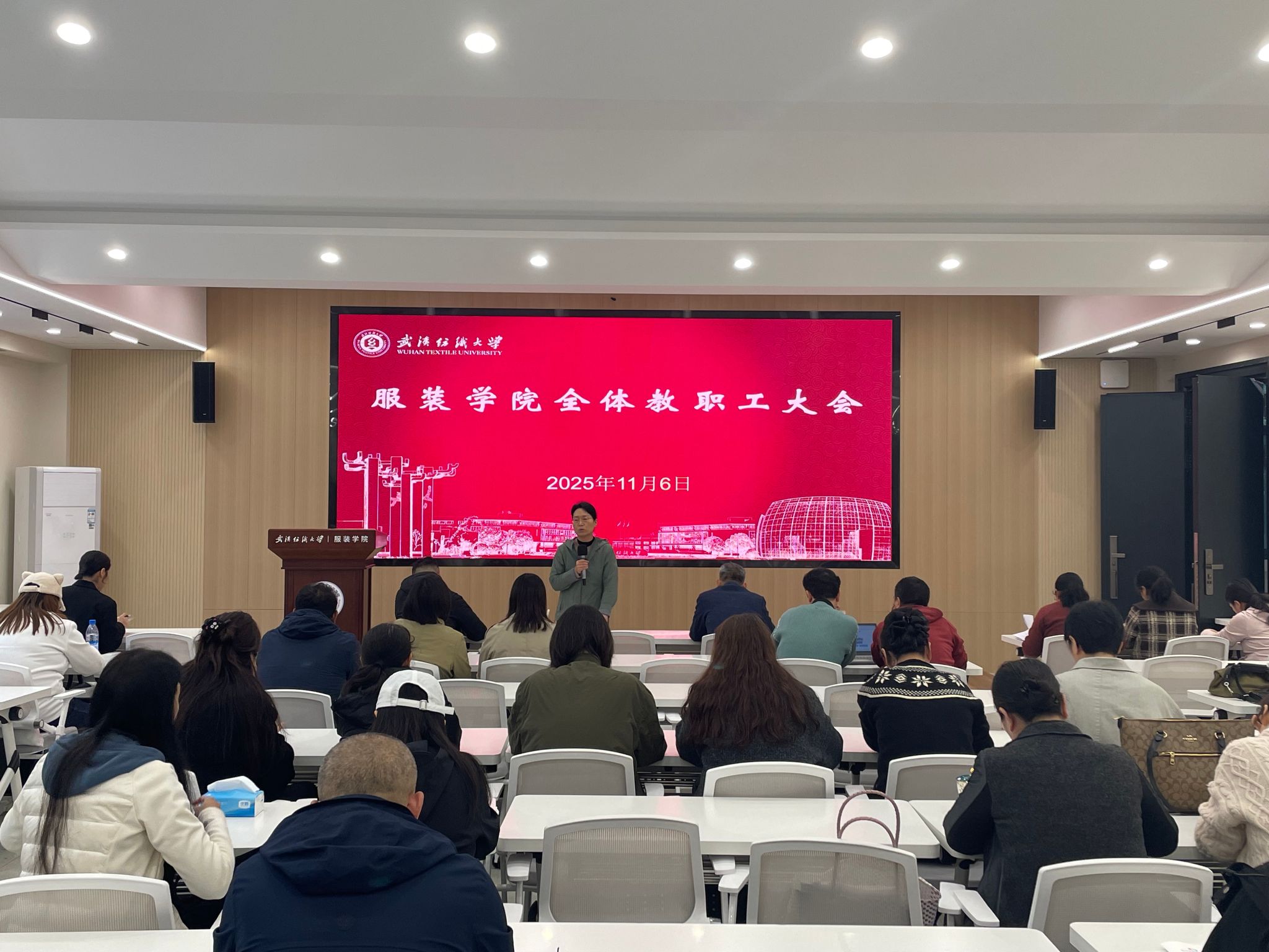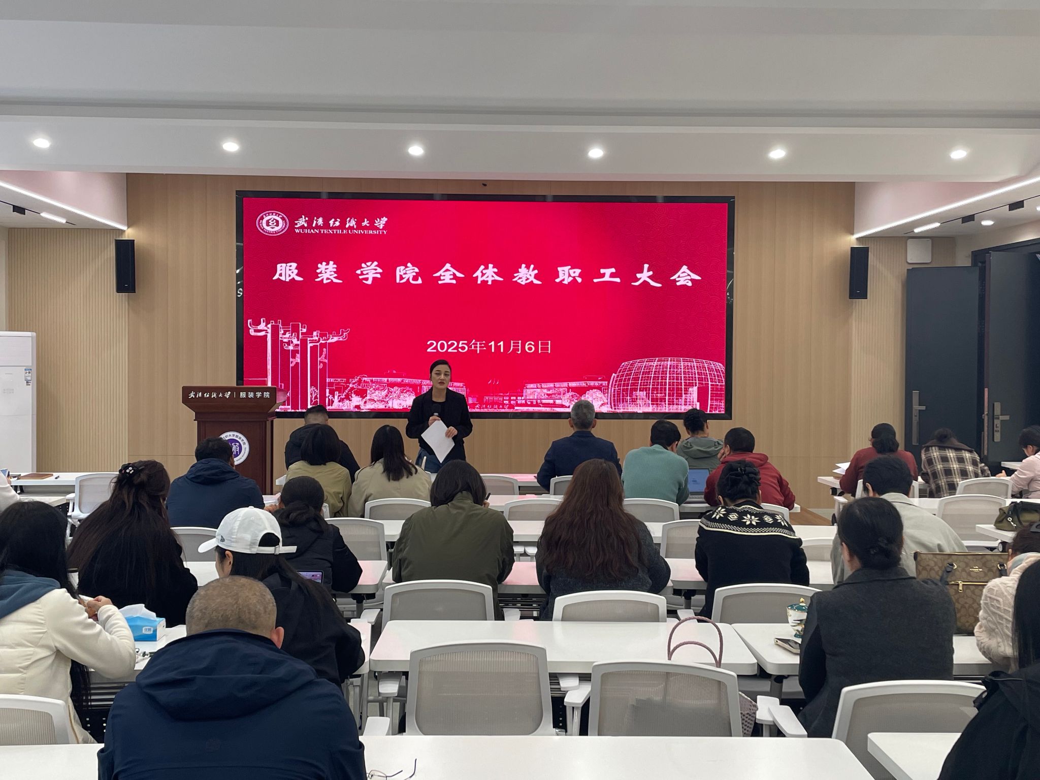 11月6日下午,服装学院在尚知楼二楼学术报告厅组织召开全院教职工大会,学院领导班子成员及全体教职工参会。会议由院长陶辉主持,旨在系统部署重点工作任务,强化责任落实,凝聚全院共识,为学院高质量发展注入强劲动力。