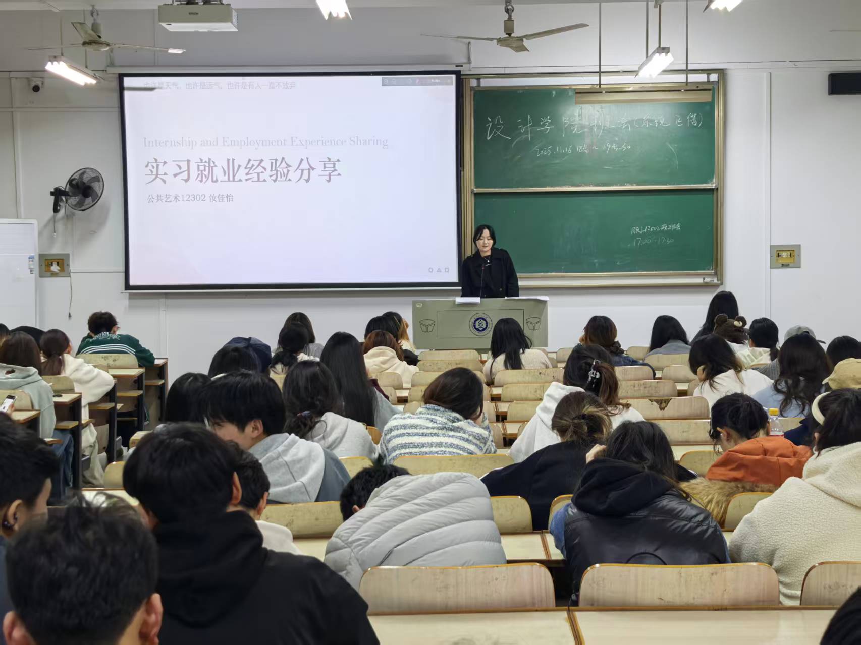 为进一步营造浓厚学习氛围,发挥优秀学子榜样引领作用。11月16日,设计学院开展“聚焦竞赛赋能与职业规划”朋辈领航分享交流会。高年级优秀学生代表杨文婷、汝佳怡围绕学科竞赛与实习就业两大主题与2024级同学进行了分享交流,2024级本科生辅导员韩泽光主持活动。