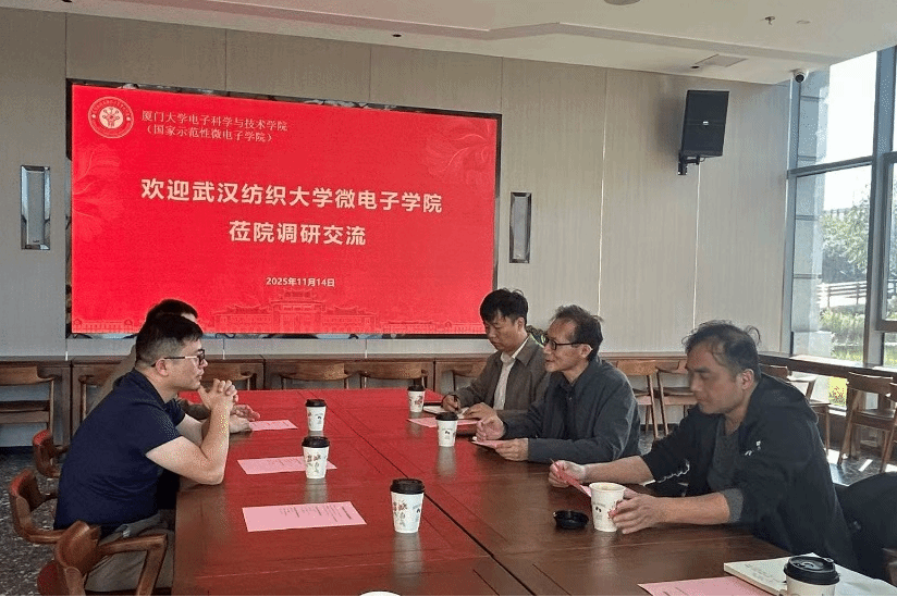 在南存钿楼师生校友共享空间举行的交流座谈会上,周平书记和陈长清院长介绍了武汉纺织大学及微电子学院的基本情况,并阐明了本次来访的目的——重点学习厦大在微电子学科建设、硕博士点布局、人才培养模式、平台建设等方面的体系化经验。吕杭炳院长对纺大推进微电子学院建设的思路表示肯定,系统介绍了厦大在化合物半导体、先进封装、集成电路测试、EDA设计等方面的特色布局以及服务本地产业的举措,并指出纺大在推进集成电路专业建设时,应充分结合纺织柔性电子、宽禁带半导体等优势方向,形成独具辨识度的专业特色。