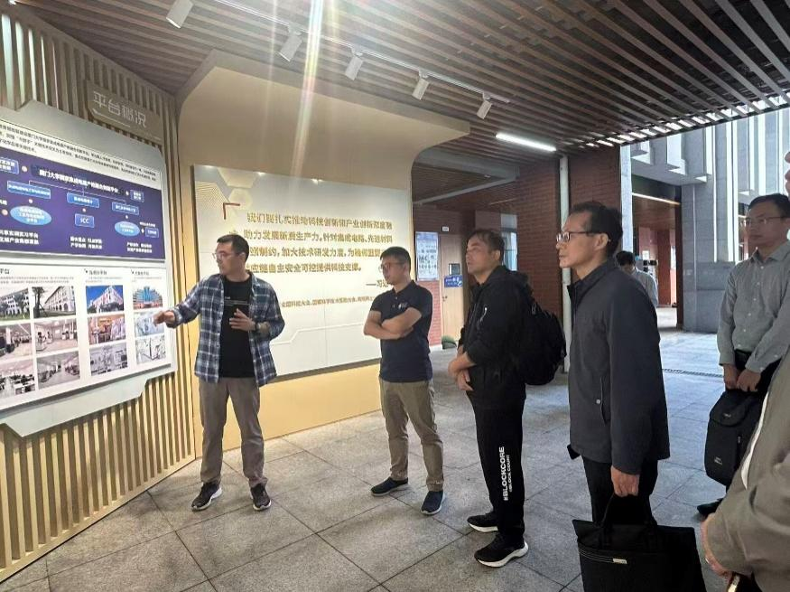 调研团队首先参观了厦门大学国家集成电路产教融合创新平台,听取了该平台在集成电路国产化设备推广、校企协同育人、实验教学体系建设等方面的经验介绍,并实地参观了平台实验室和仪器设备,对厦大在平台建设和产业化支撑方面的做法有了全面了解。