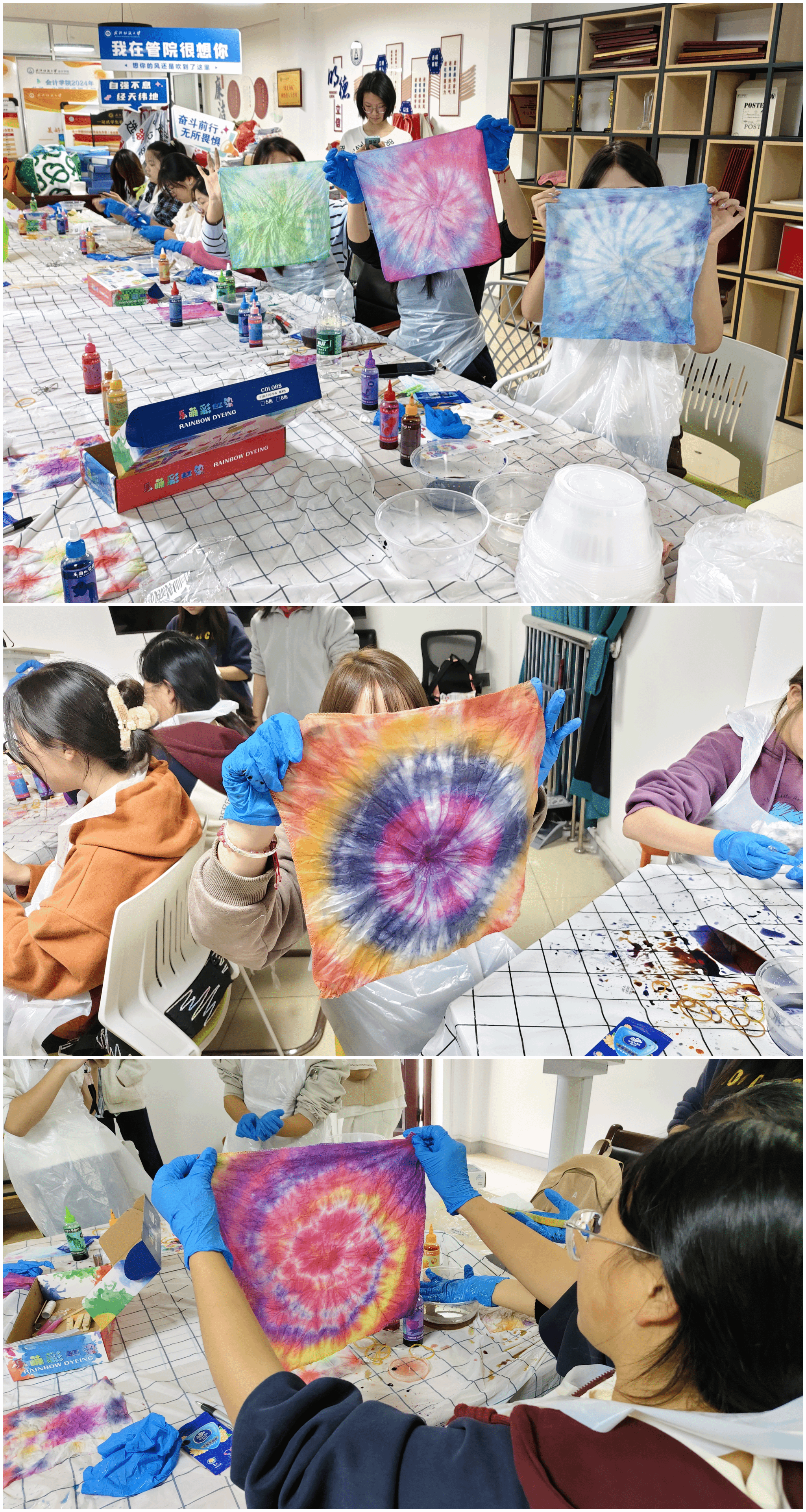 近日,管理学院文化节之非遗扎染心理活动在蓝茑轩、益起阳光一站式学生社区活动中心成功举办,此次活动由管理学院阳光心苑工作站主办,以“染韵匠心,疗愈时光”为主题,旨在通过非遗扎染体验活动,舒缓学生心理压力,增强学生审美志趣,提升学生心理调适能力。
