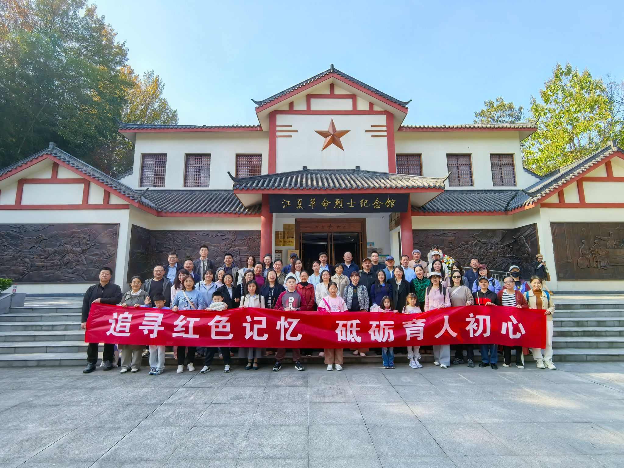 活动首站,全体教师前往武汉市江夏区革命烈士纪念馆进行参观学习。在庄严肃穆的纪念馆内,教师们仔细观看馆内陈列的历史文献、革命文物与影像资料,深入了解了革命战争时期先烈们在江夏地区的英勇奋斗历程与光辉事迹。通过实地参观与学习,教师们深刻感悟到革命先辈坚定的理想信念与崇高的奉献精神,接受了一次深刻的党性教育与思想洗礼。大家纷纷表示,要将红色基因内化于心、外化于行,坚守“为党育人、为国育才”的初心使命,在教育教学与管理服务岗位上履职尽责,担当作为。