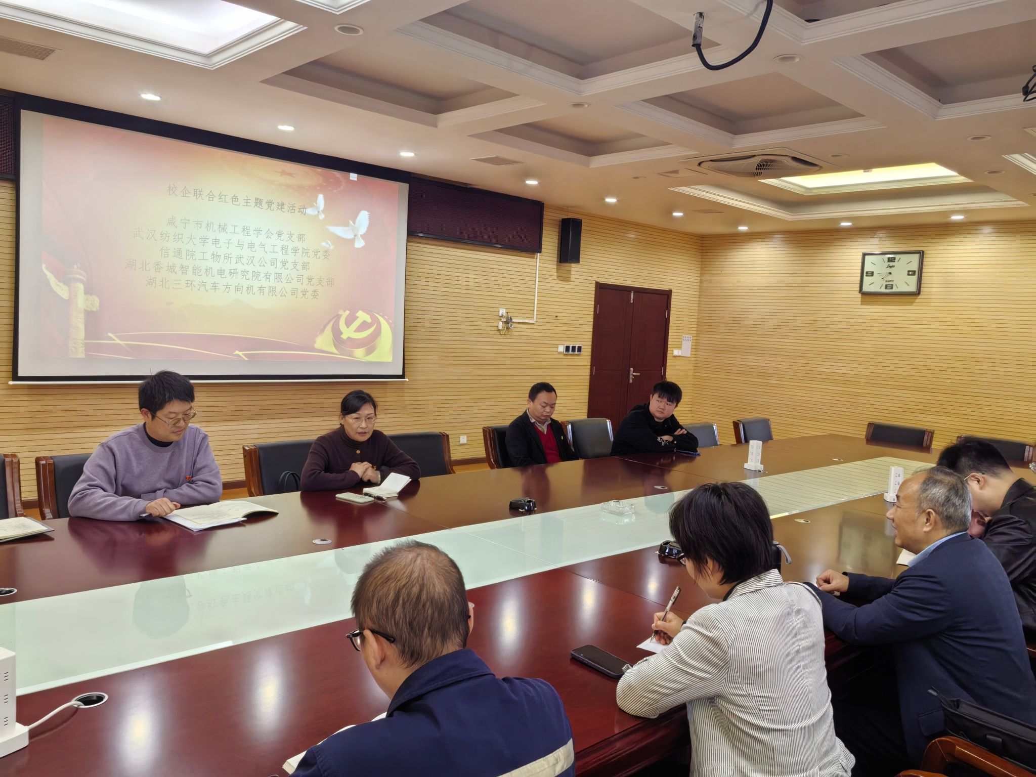 11月14日,电子电气学院党委与咸宁市机械工程学会党支部、湖北三环汽车方向机有限公司党委、信通院工物所武汉公司党支部、湖北香城智能机电研究院有限公司党支部组织开展校企联合党建活动。各企业负责人,学院党委书记张红鑫,教师党员代表共同参会。