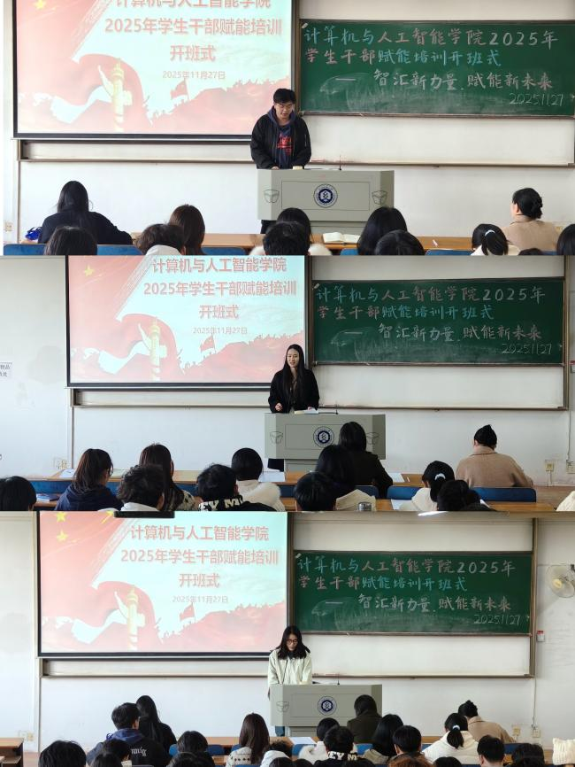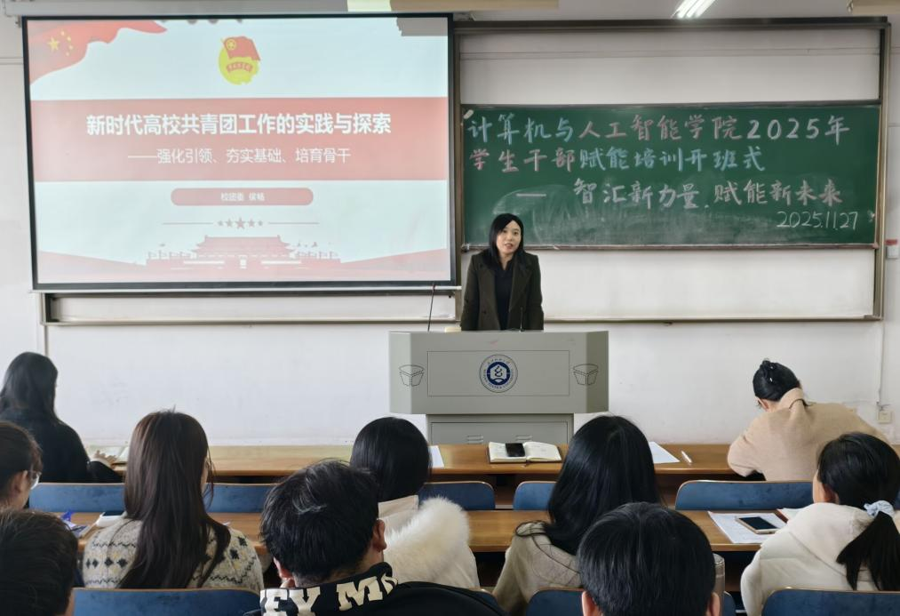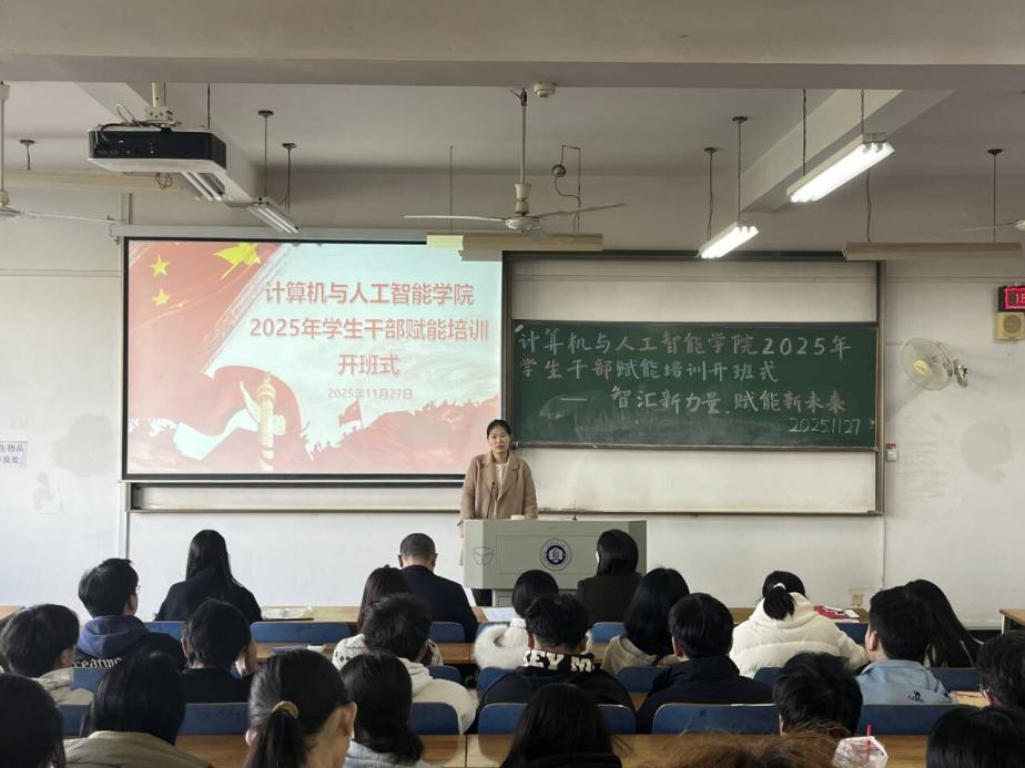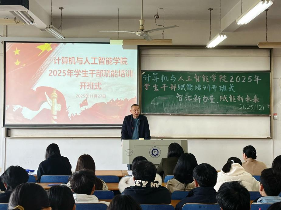 为切实加强学院学生干部队伍建设,提升学生骨干的综合素质与履职能力,11月27日下午,计算机与人工智能学院在崇志楼218教室举行2025年学生干部赋能培训开班式。校团委副书记侯畅、学院党委书记晏伟出席活动。院团委书记喻仪、院团委指导老师易凡、研究生辅导员余梦帆,以及研究生会、第五届团委学生会全体成员、2024级与2025级全体班委参加。活动由喻仪主持。