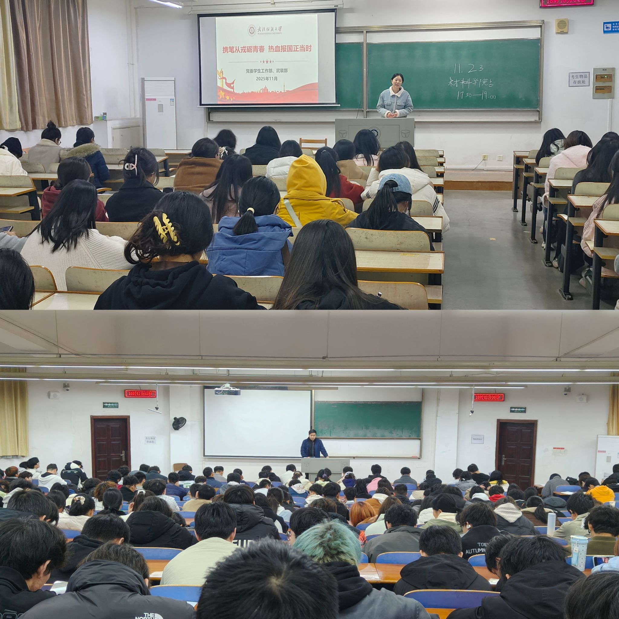 为鼓励材料学子携笔从戎,积极投身国防建设,近期,材料学院通过开展主题教育班会、入伍政策宣讲课、退役大学生士兵朋辈交流系列活动,切实推进征兵工作“三个一”宣传动员。本次活动由班主任、辅导员主持,面向学院各年级学生,激发了学生的参军报国热情。