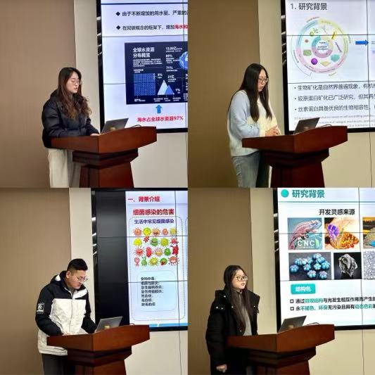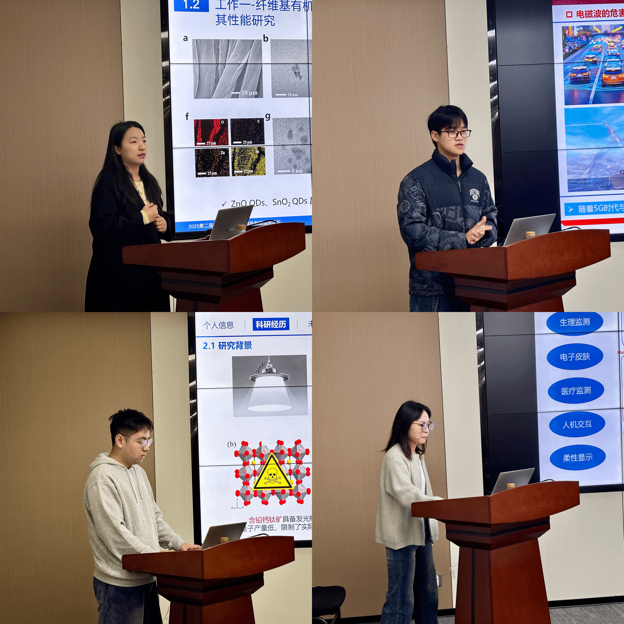 论坛在教育部重点实验室李沐芳教授的致辞中拉开帷幕,她指出,绿色制造与智能制造的深度融合,离不开青年科研力量的接续奋斗,希望研究生们以论坛为舞台,敢于提出新问题、创造新思路。随后,来自教育部重点实验室的八位硕士研究生依次登台,围绕先进纺织材料与绿色制造领域的核心研究内容进行汇报,详细展示了各自的科研进展与创新点,展现了青年学子在该领域的探索深度与思考维度。研究生汇报完毕后,孙刚、刘嵩、易世雄、纪柏林四位专家根据汇报内容和表现进行打分,他们既肯定了同学们“敢想敢做”的创新精神,也从实验设计的严谨性、机理研究的深度、产业化路径的可行性等方面提出中肯建议,为青年学子的科研方向提供了清晰指引。