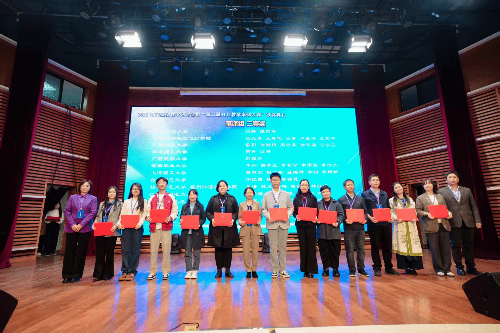 近日,由全国翻译专业学位研究生教育指导委员会指导,上海市科技翻译学会主办,上海理工大学外语学院、上海应用技术大学外国语学院承办的MTI案例教学研讨会暨“第二届MTI教学案例大赛”颁奖典礼在上海应用技术大学举行。我校外国语学院MTI教育中心教师团队凭借出色的教学设计与创新实践取得佳绩:刘珊老师团队荣获二等奖,柯细香老师团队获优胜奖。