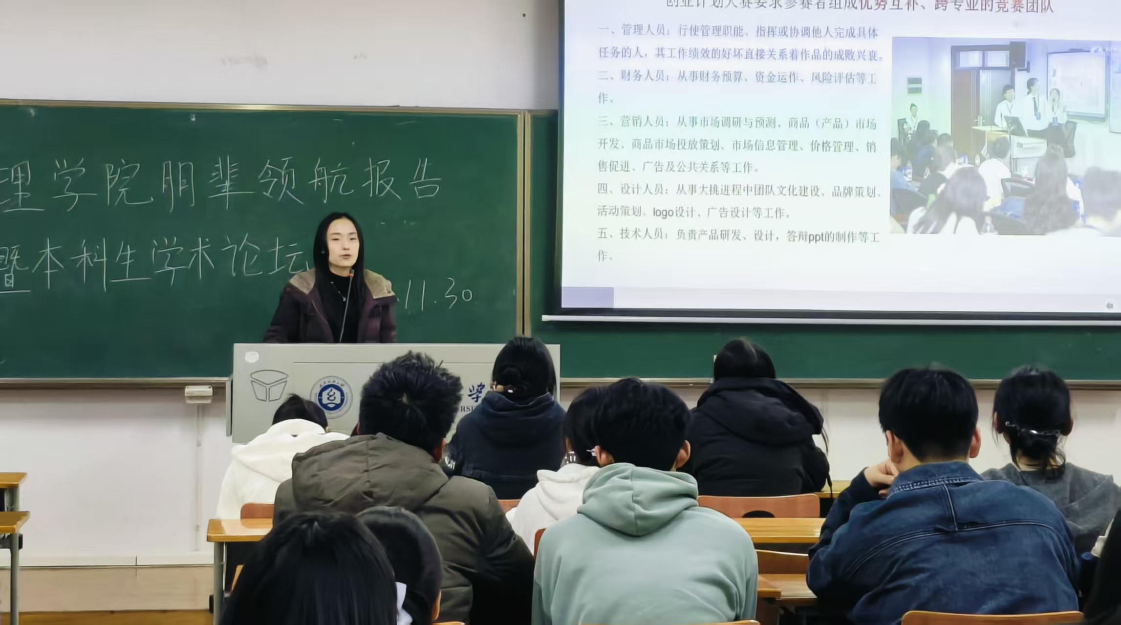 为搭建本科生学术交流与创新实践平台,发挥优秀学子的朋辈示范效应,11月30日晚,管理学院在阳光校区崇德楼204教室举办朋辈领航报告会暨本科生学术论坛。活动邀请荣获第十九届“挑战杯”全国大学生课外学术科技作品竞赛“人工智能+”专项赛二等奖的汤逊湖纺织团队进行分享,学院领导、老师、各年级学生代表参加。