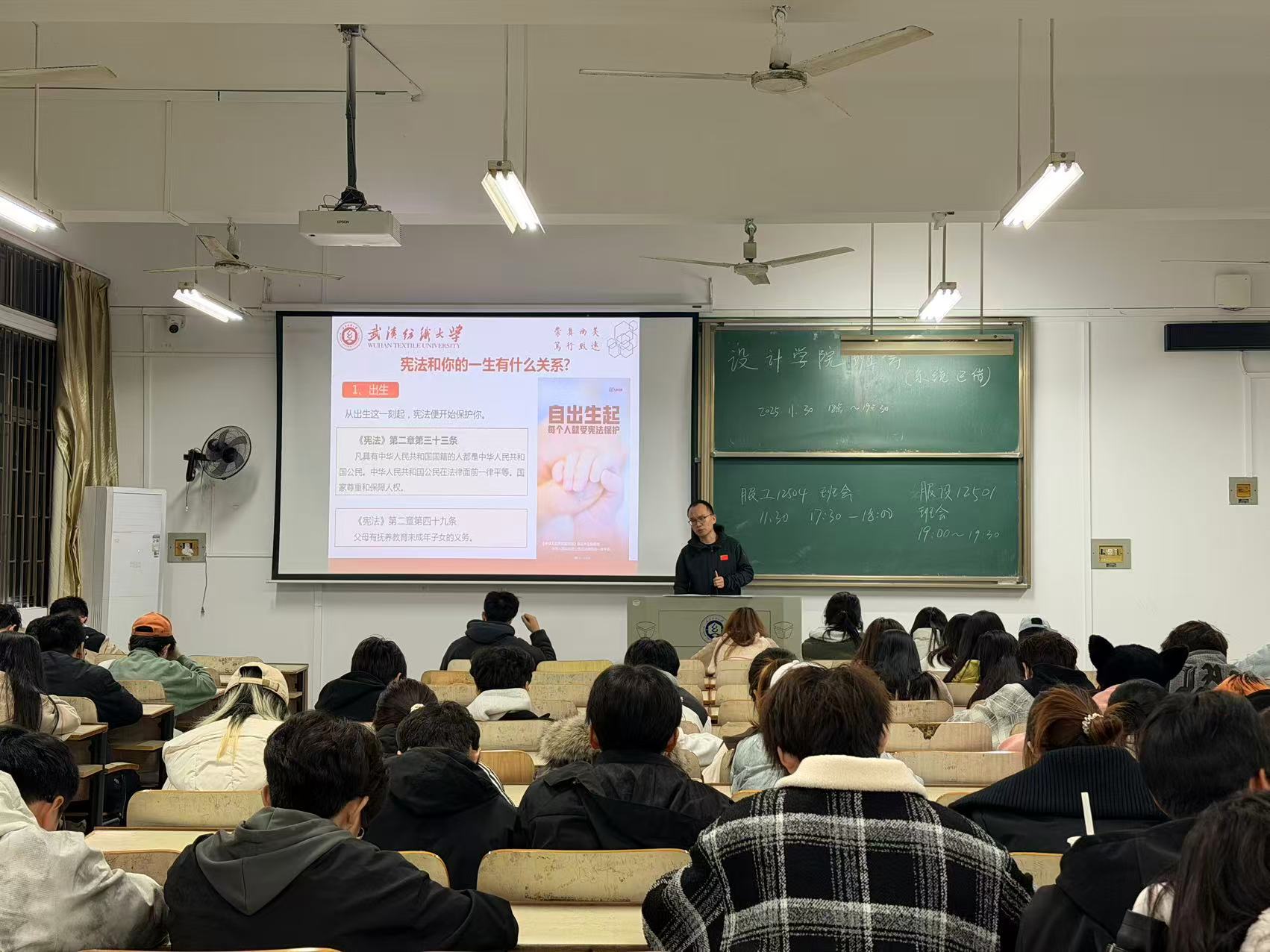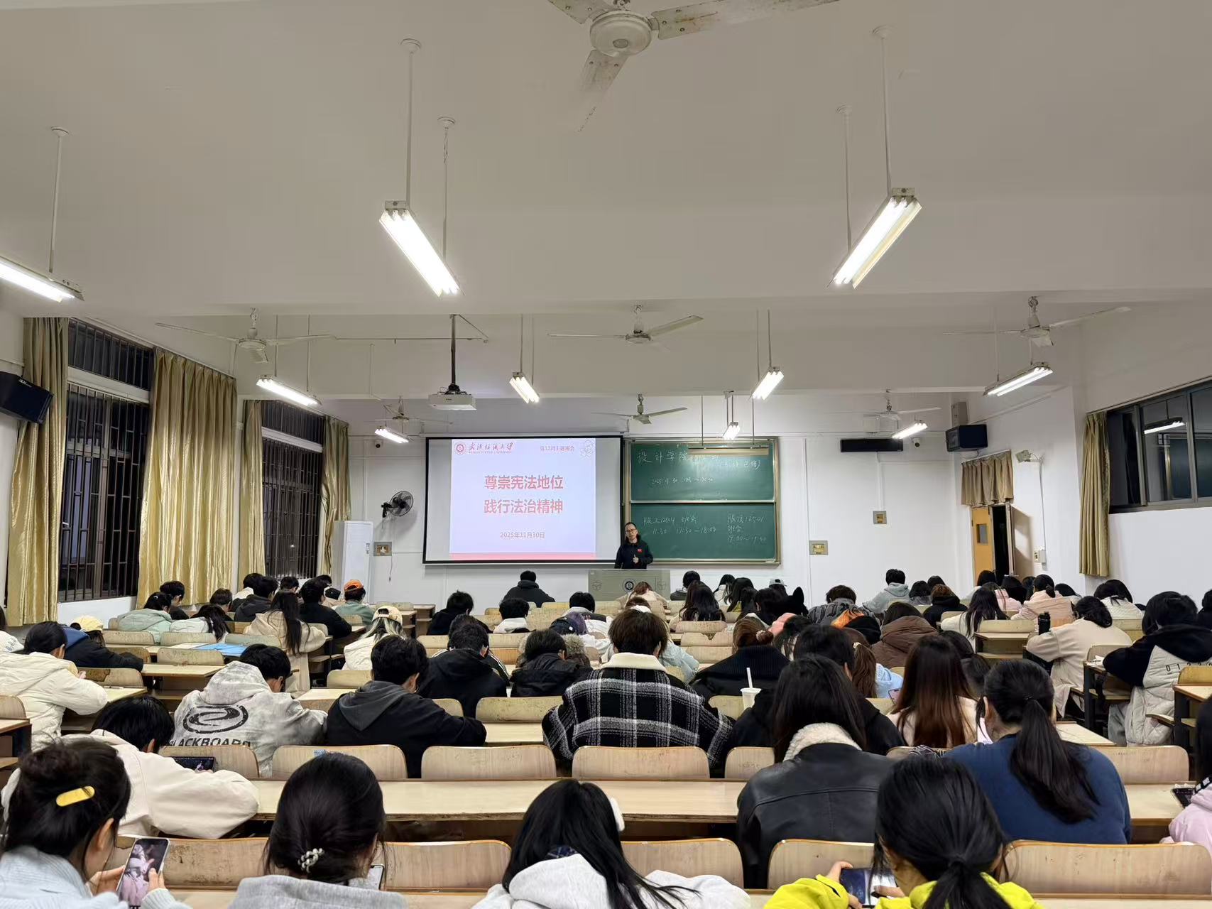 各班班主任分别从宪法的核心地位、基本原则、宪法精神等内容切入,解读宪法与学生的密切联系。班会强调,宪法不仅是国家的根本大法,更是保障公民权利、规范社会秩序的根本遵循,青年学生作为新时代的接班人,尊崇宪法、践行法治是必备的素养与责任。班主任们还结合校园生活中的典型案例,如知识产权保护、网络行为规范、人际交往中的法律边界等,引导学生思考法治在日常中的具体体现,让抽象的法律知识变得生动可感。