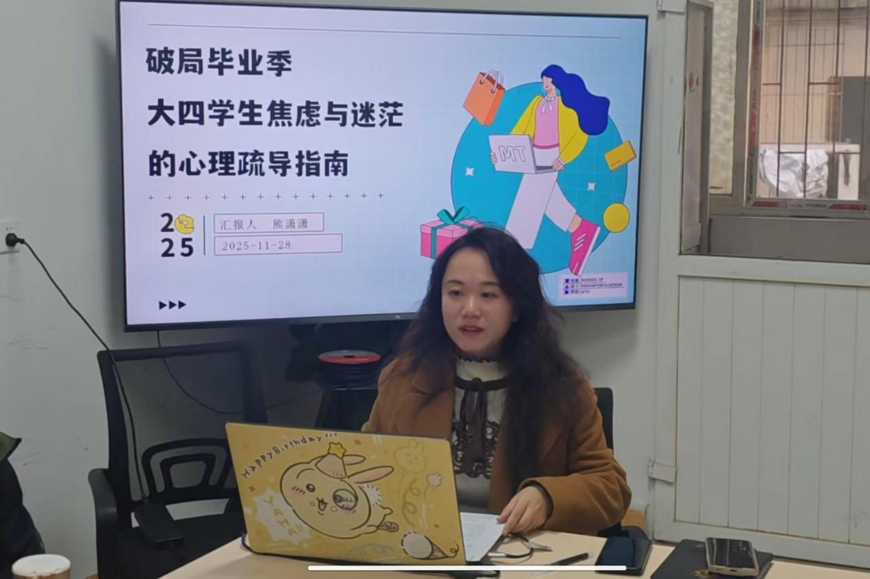 创新设计学院辅导员熊老师聚焦大四学生毕业焦虑问题,提出了系统化的心理疏导指南。她深入剖析了毕业生的四大压力源:时限性、成就性、关系性与适应性压力,并总结了焦虑、退缩、抑郁、躯体化四类预警信号。针对不同学生群体,她构建了“普遍引导、精准关注、介入干预”三层支持体系,强调通过家校协同、朋辈支持形成合力。结合“求职挫败后酗酒”和“考研完美主义焦虑”两个典型案例,熊老师现场演示了如何运用共情、认知重构与行为激活等技巧,帮助学生破局成长。其“一人一策”的精准干预模式,为应对毕业季心理挑战提供了可复制的实战经验。