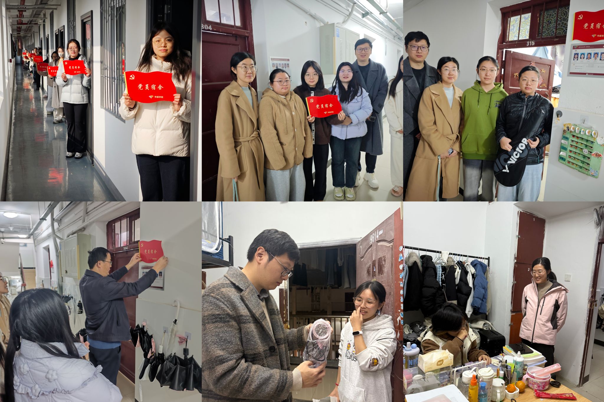 12月9日,学院开展“党员宿舍”挂牌行动,以鲜明标识强化党员责任担当。挂牌活动中,辅导员老师与学生党员们深入交流,亲手将一块块鲜红醒目的“党员宿舍”标识牌郑重悬挂在宿舍门口。每到一间宿舍,老师们仔细查看内务整理情况,询问同学们的学习进度与生活状态,围绕党员的责任担当与示范引领作用展开深度沟通。“牌匾挂在门口,既是一份光荣的荣誉,更是一份沉甸甸的责任。”老师们殷切寄语学生党员,“希望大家始终以‘党员’身份严格要求自己,在日常学习生活的点滴中亮明身份、树立形象、作出表率,带动身边同学共同进步。”