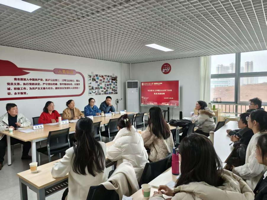 12月5日上午,马克思主义学院研究生党支部在阳光校区15栋研究生公寓四楼马院“一站式”学生党建共享社区,举行2025年下半年研究生党员发展对象候选人答辩会。会议由研究生党支部副书记陈怡主持,学院党委书记邹茜、党委副书记徐喆、研究生党支部书记蒋彭阳、“初心”研究生师生党支部副书记蒋辛以及研究生教学秘书李满意担任评委。2023级、2024级共11位入党积极分子参加了此次答辩。